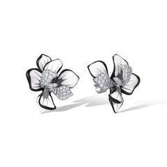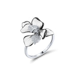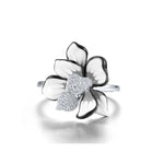 925 Sterling Silver Flower Ring with Enamel and Cubic Zirconia