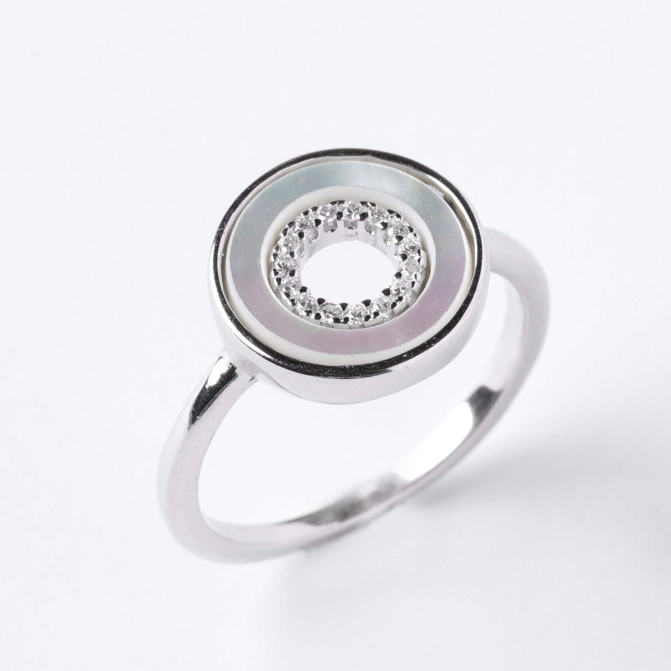 925 Sterling Silver Ring with Mother of Pearl and Cubic Zirconia