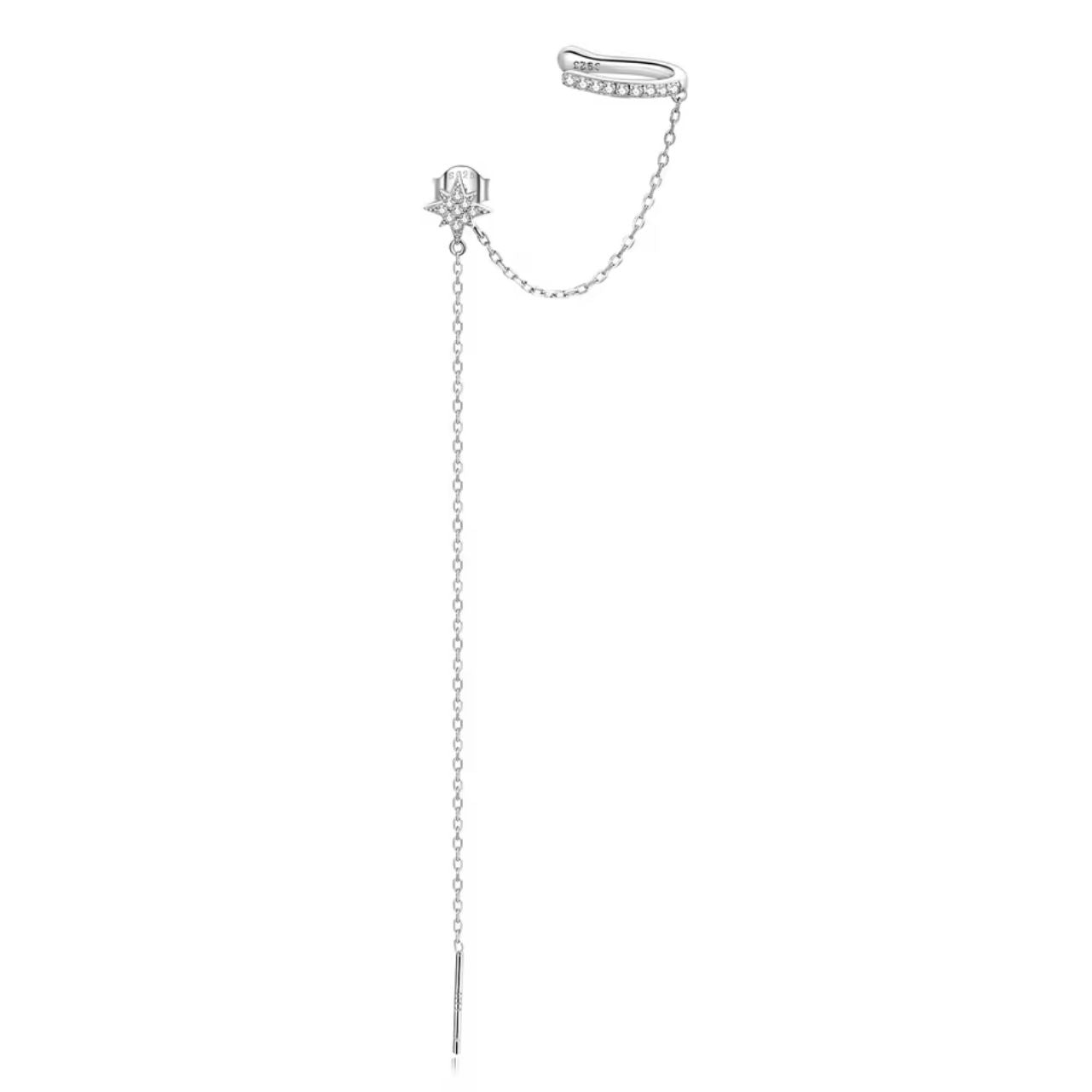 925 Sterling Silver Cuff Earring with Chains