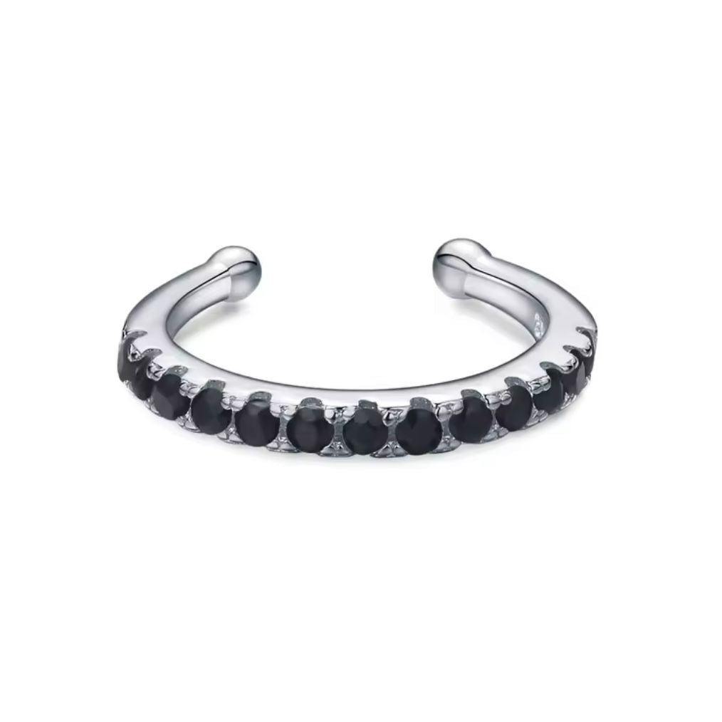 925 Sterling Silver Cuff Earrings with Black Cubic Zirconia