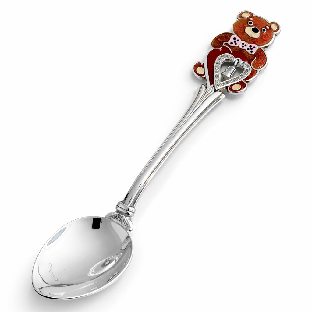 925 Sterling Silver Spoon Teddy Bear with Enamel and Cubic Zirconia