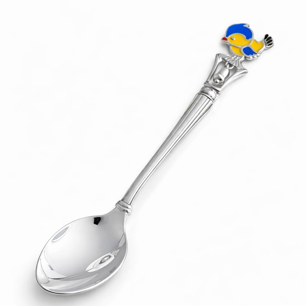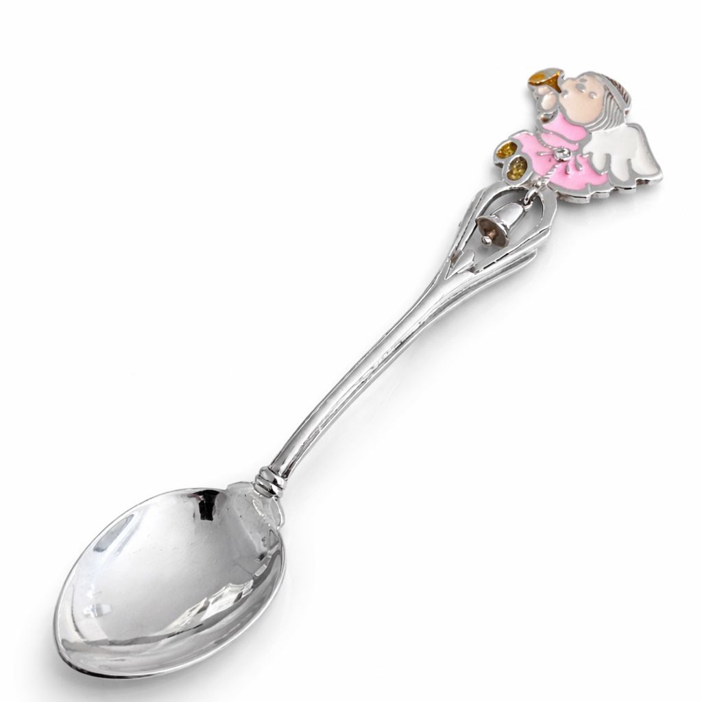 925 Sterling Silver Spoon Angel with Blue, Yellow, White Enamel and Cubic Zirconia