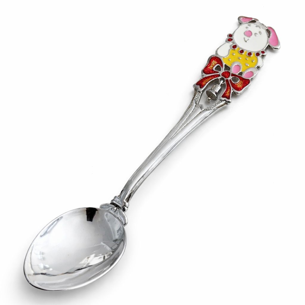 925 Sterling Silver Spoon Rabbit with Red,Yellow and White Enamel
