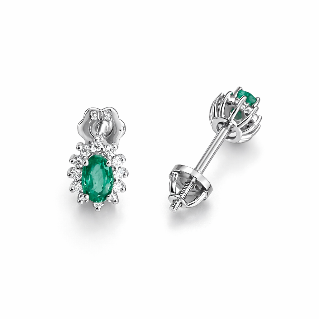 Stud Earrings in 14K/585 White Gold with Emeralds and Diamonds