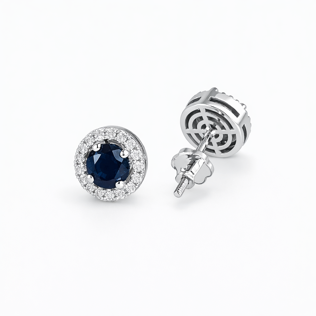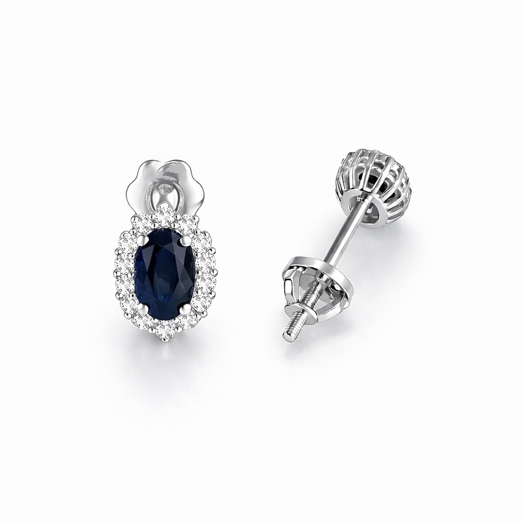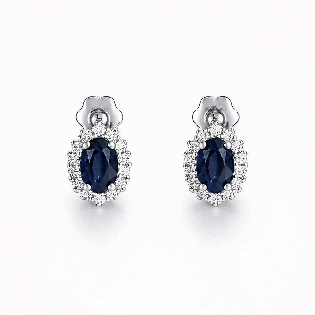 Stud Earrings in 14K/585 White Gold with Sapphires and Diamonds