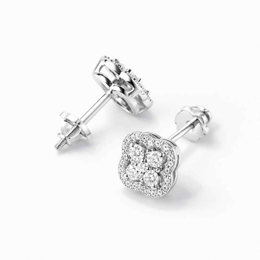 Stud Earrings Clover in 14K/585 White Gold with Diamonds