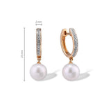 Drop Earrings in 14K/585 Rose Gold with Fresh Water White Pearls and Diamonds