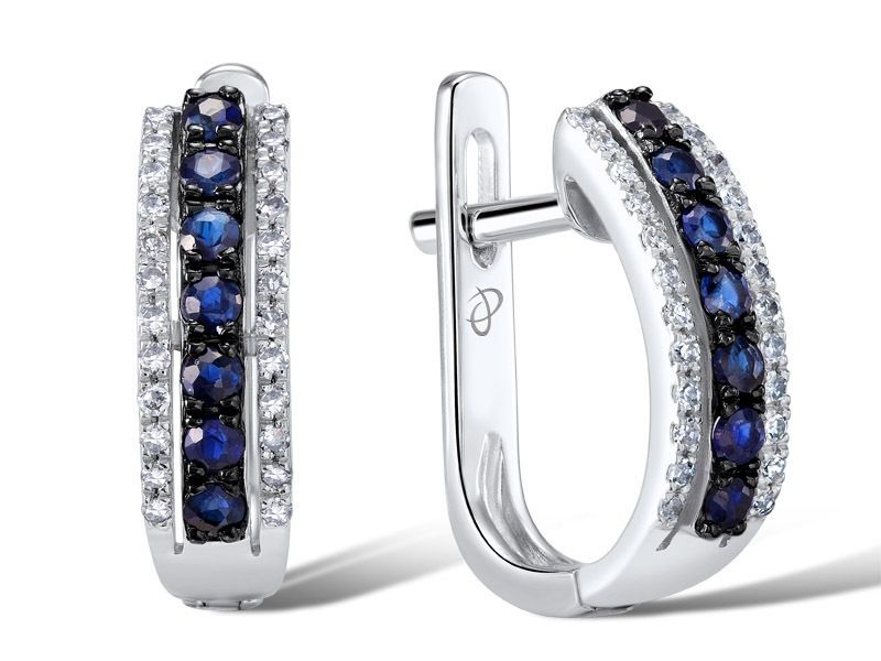 Lever Back Earrings in 14K/585 White Gold with Blue Sapphires and Diamonds