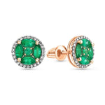 Stud Earrings in 14K/585 Rose Gold with Emeralds and Diamonds