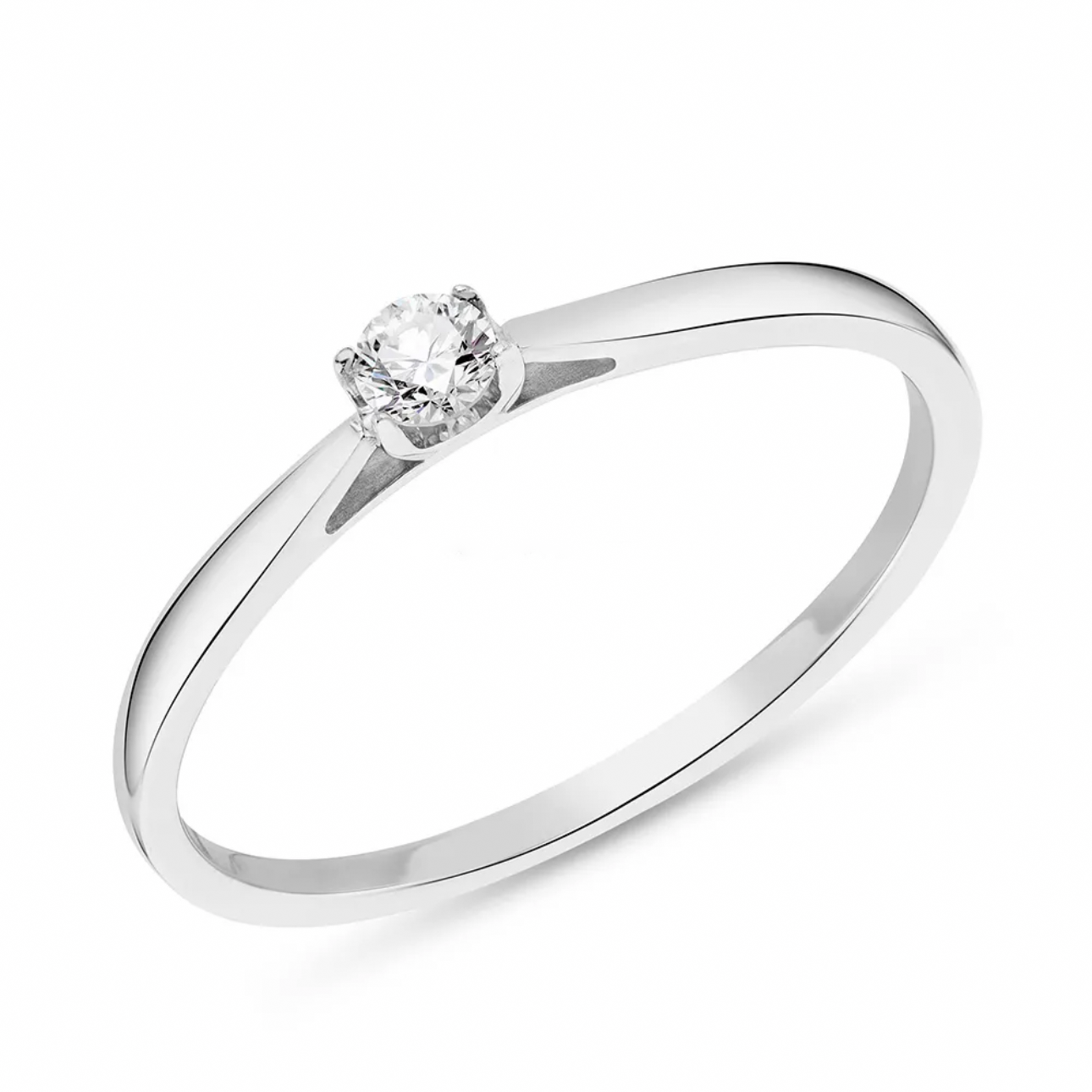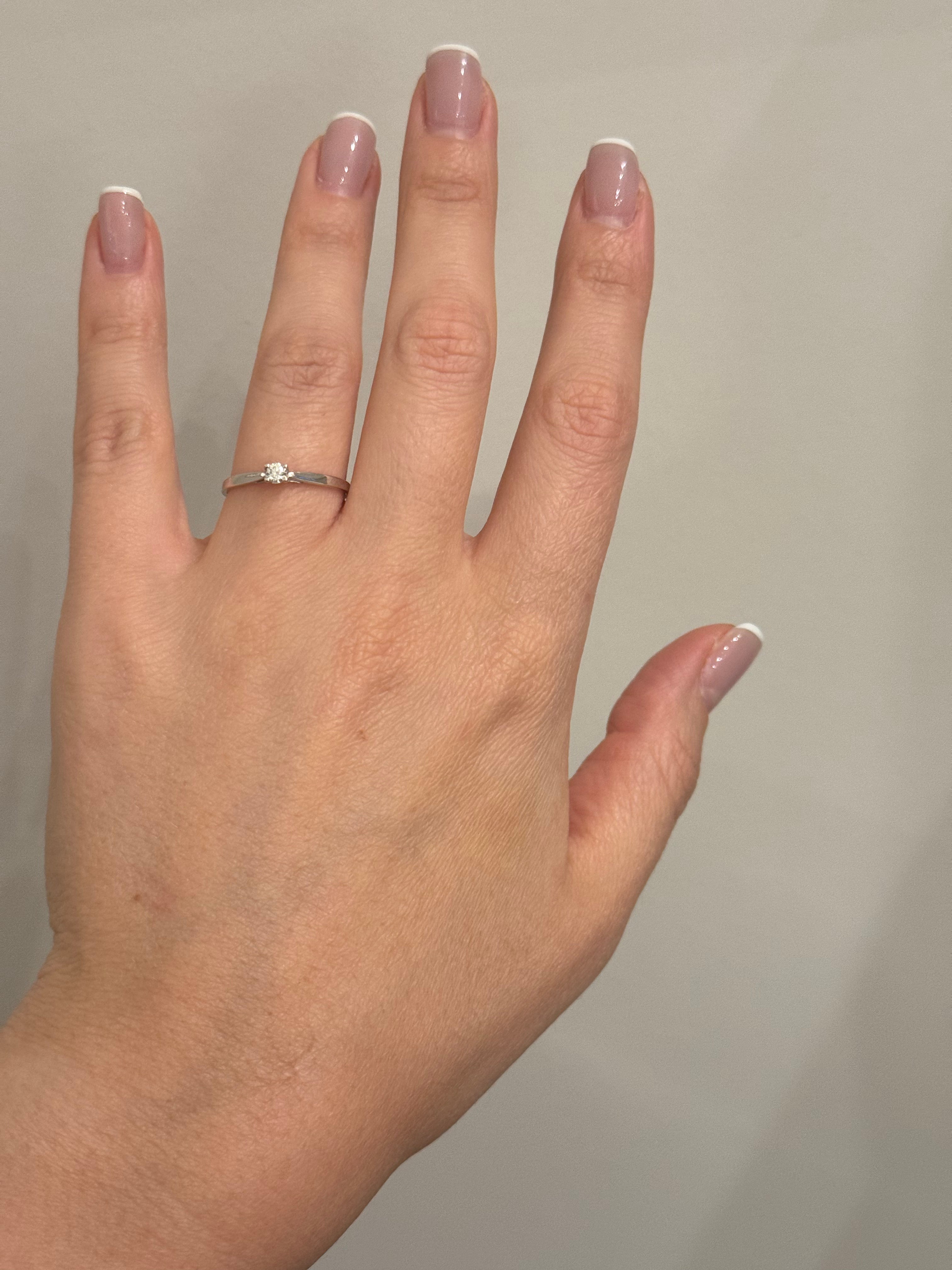 This classic 14K white gold diamond ring is the perfect choice for an engagement ring. With a delicate design, it is sure to make your partner say "yes." Featuring a single diamond in the center, this ring is sure to be cherished for years to come.