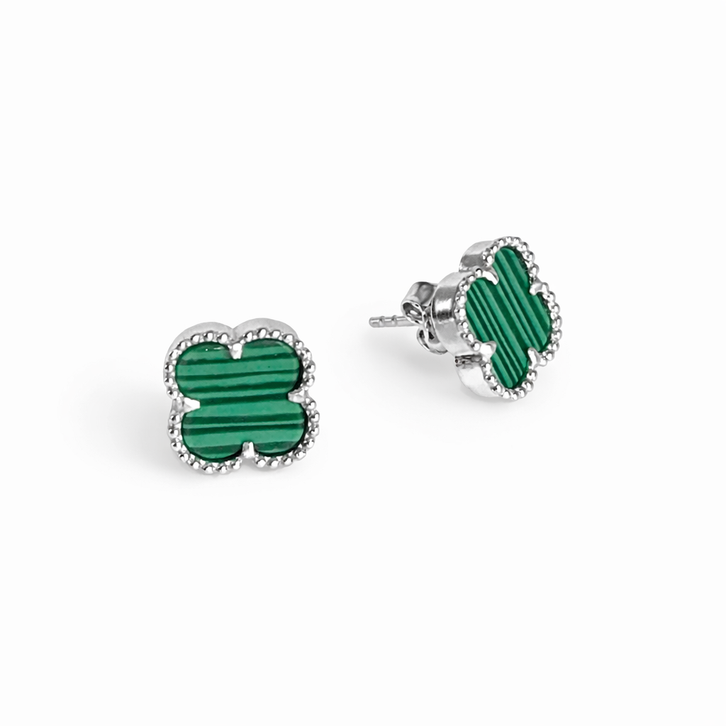 925 Sterling Silver Stud Earrings "Clover" with Onyx