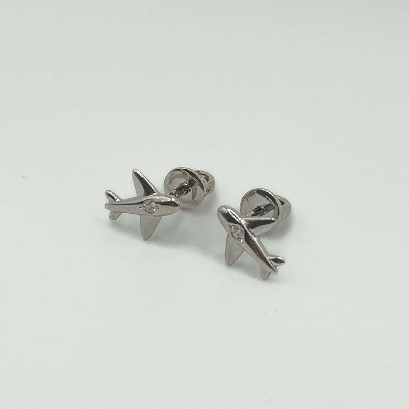 925 Sterling Silver Plane Stud Earrings with Cubic Zirconia