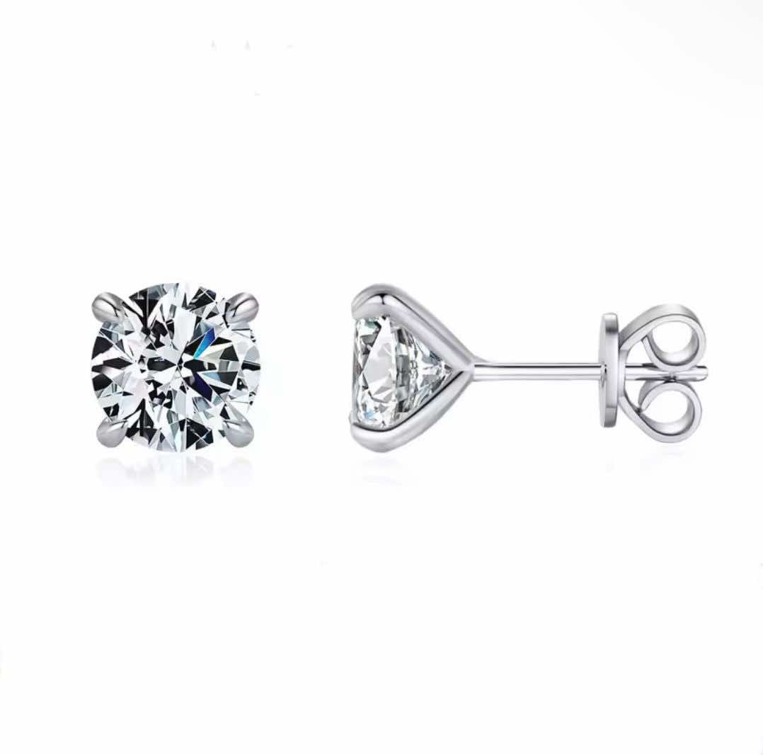925 Sterling Silver Stud Earrings with Moissanites 1 ct