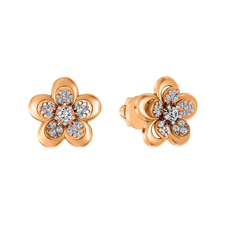 Stud Earrings "Flowers" in 14K/585 Rose Gold with Cubic Zirconia