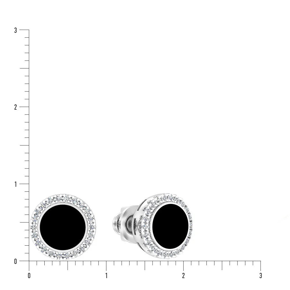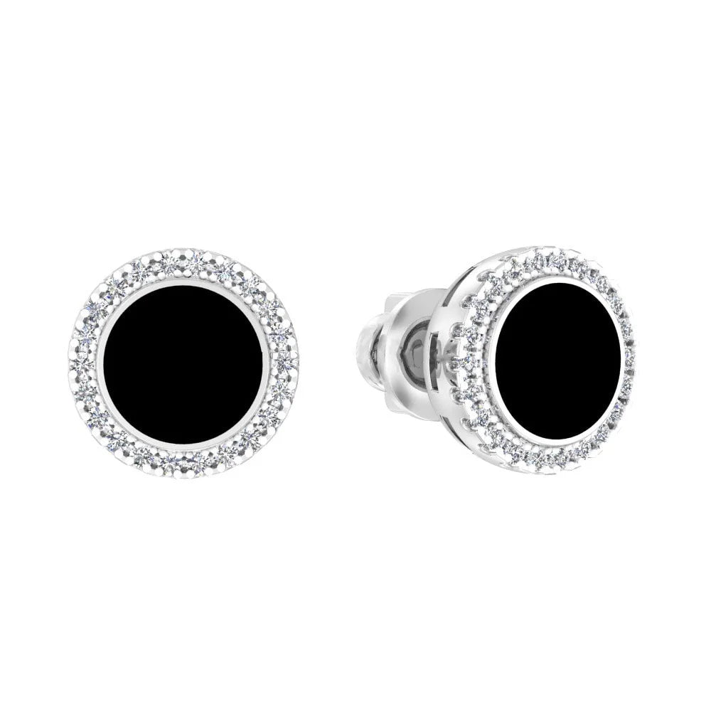 Stylish stud earrings in 14K white gold decorated with black enamel and cubic zirconia.
