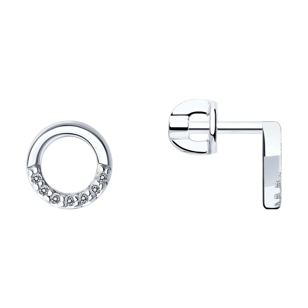 Beautiful circle stud earrings decorated with cubic zirconia.