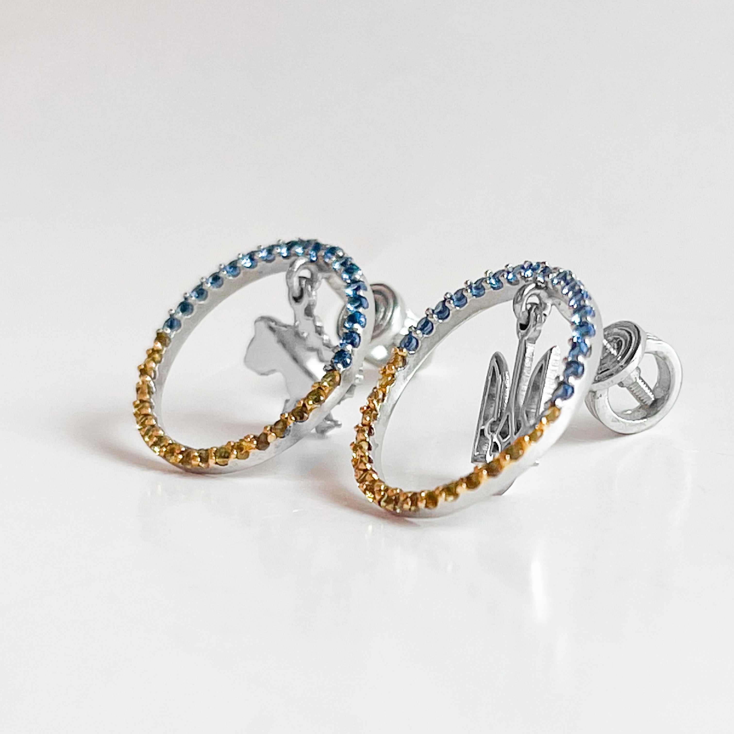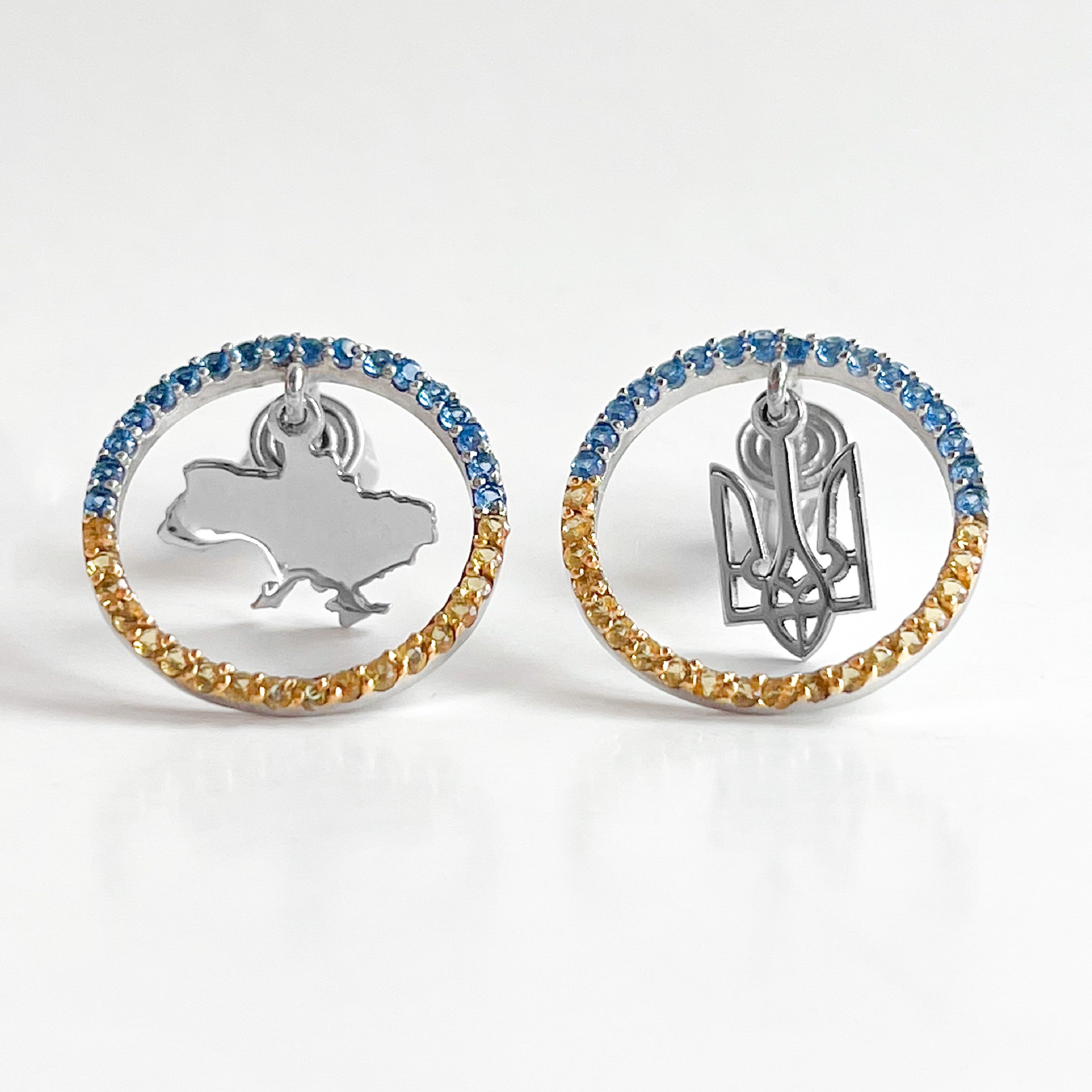 925 Sterling Silver Stud Earrings with Tryzub and Map of Ukraine