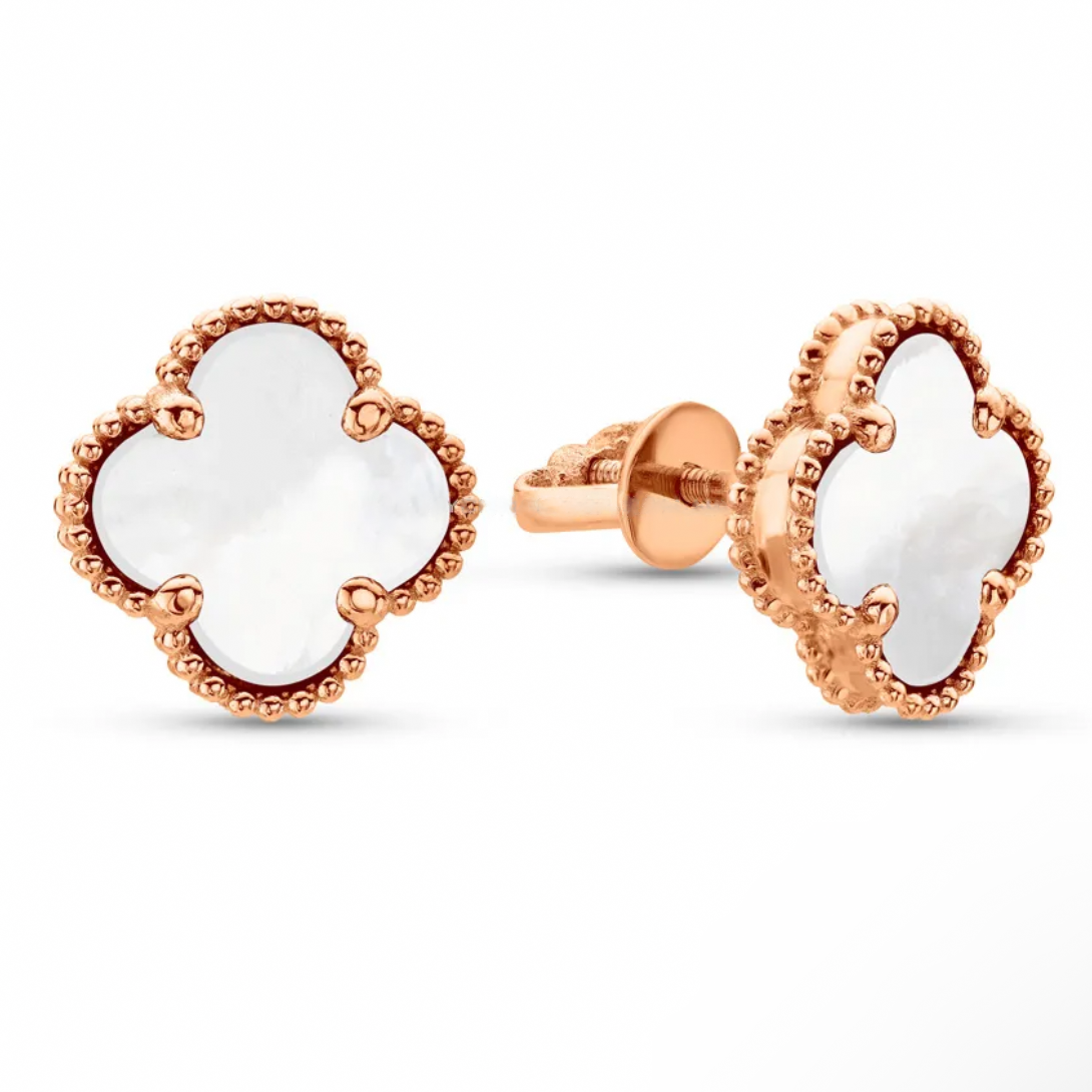 Stud Clover Earrings in 14K/585 Rose Gold with Mother of Pearl