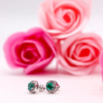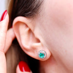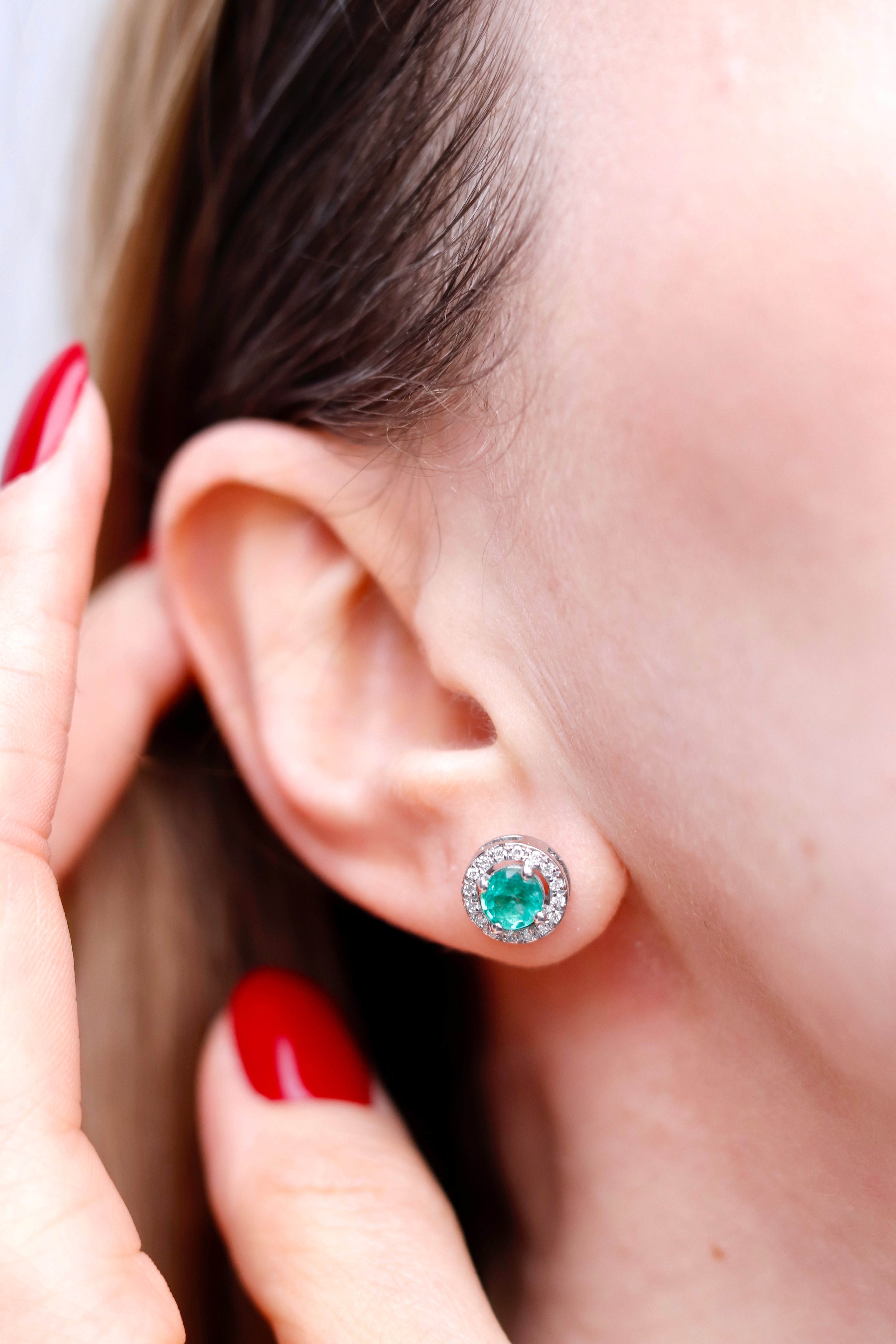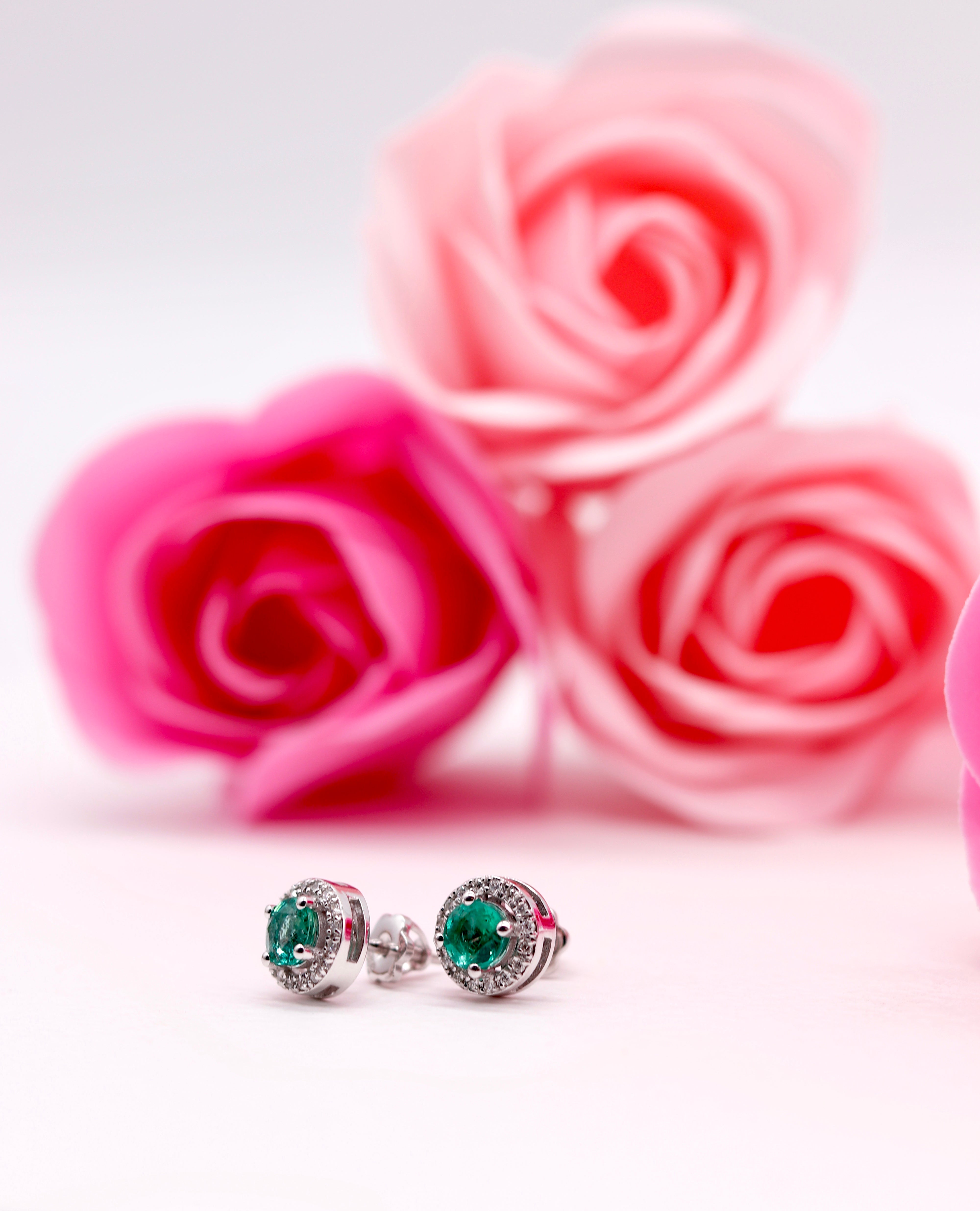 Stud Earrings in 14K/585 White Gold with Emeralds and Diamonds