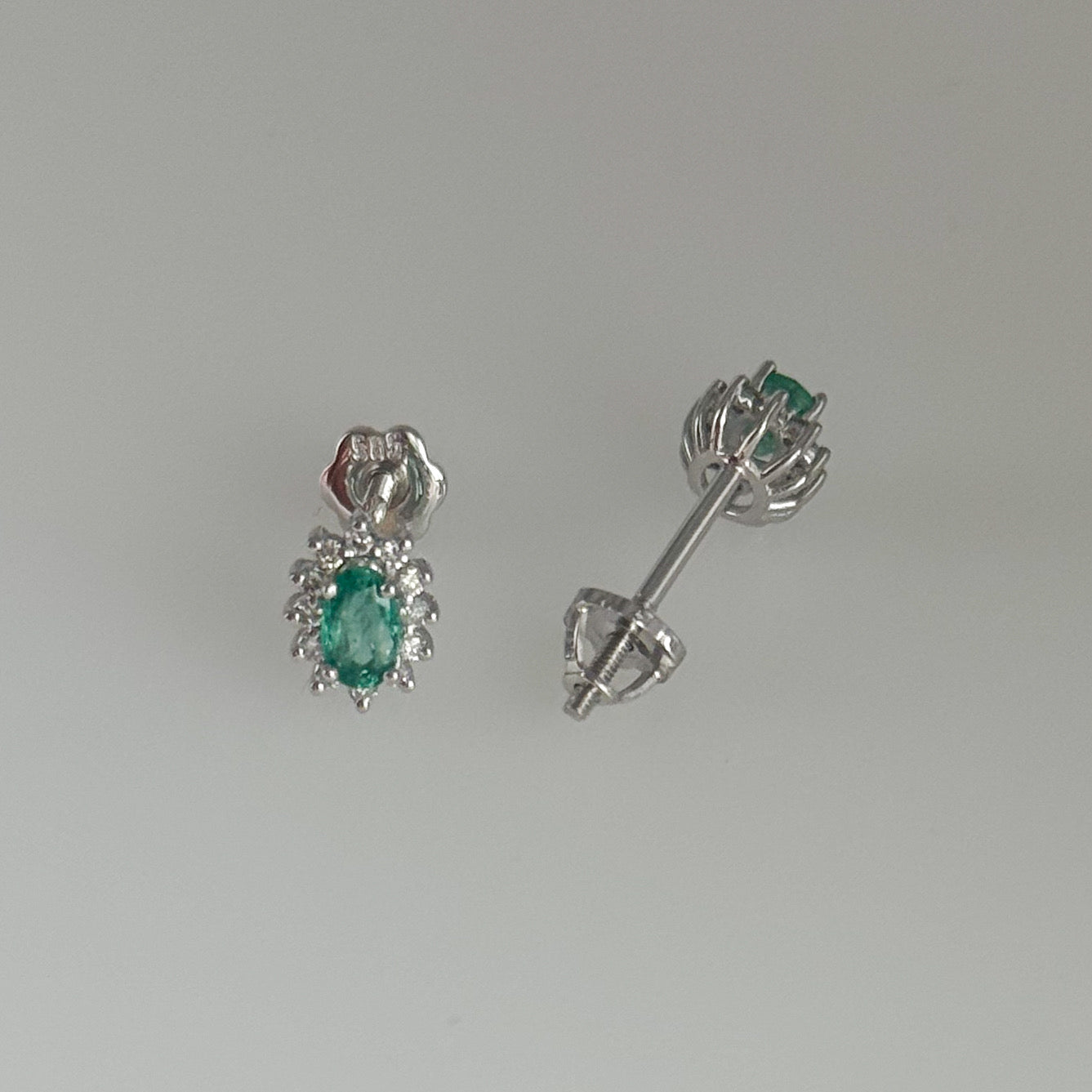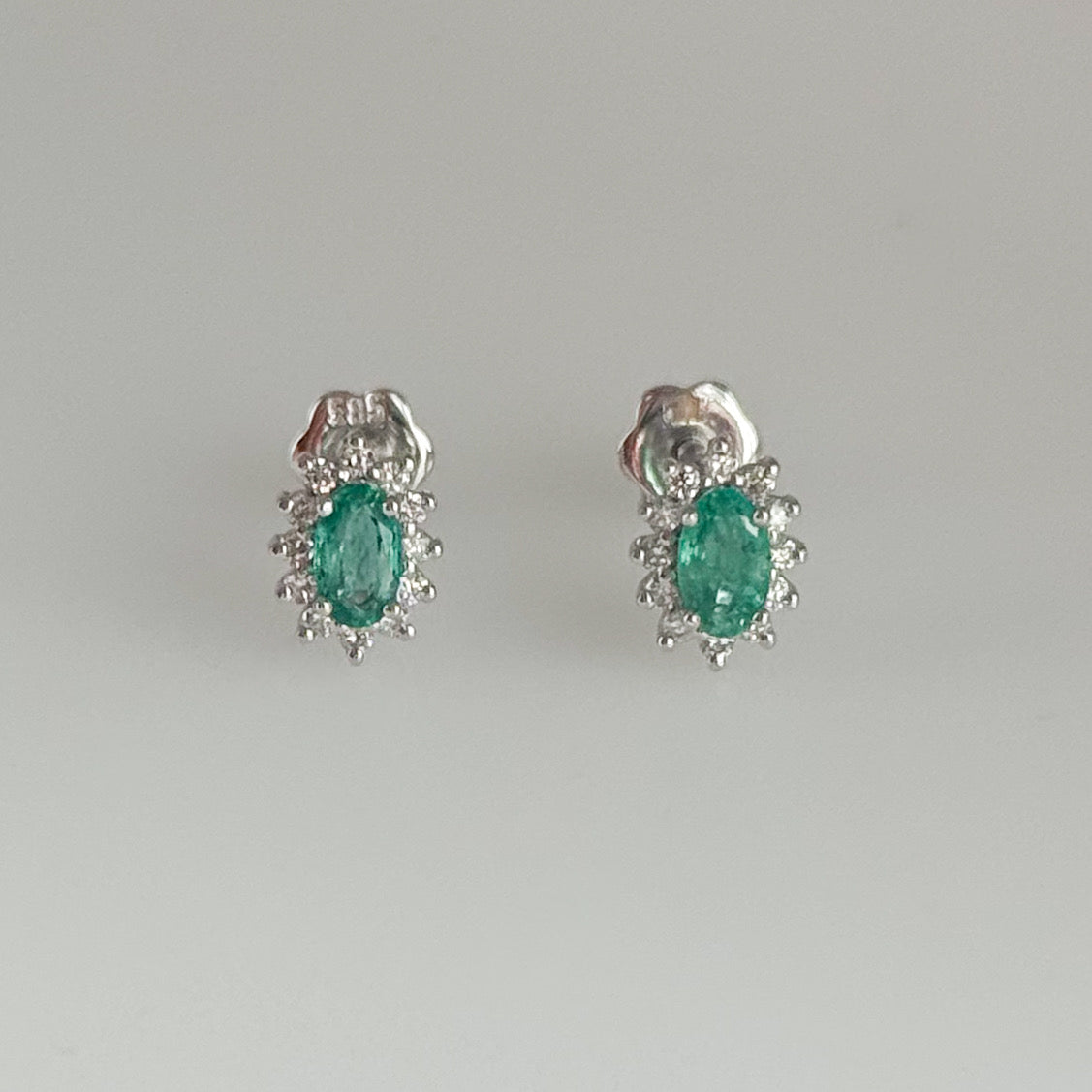 Stud Earrings in 14K/585 White Gold with Emeralds and Diamonds