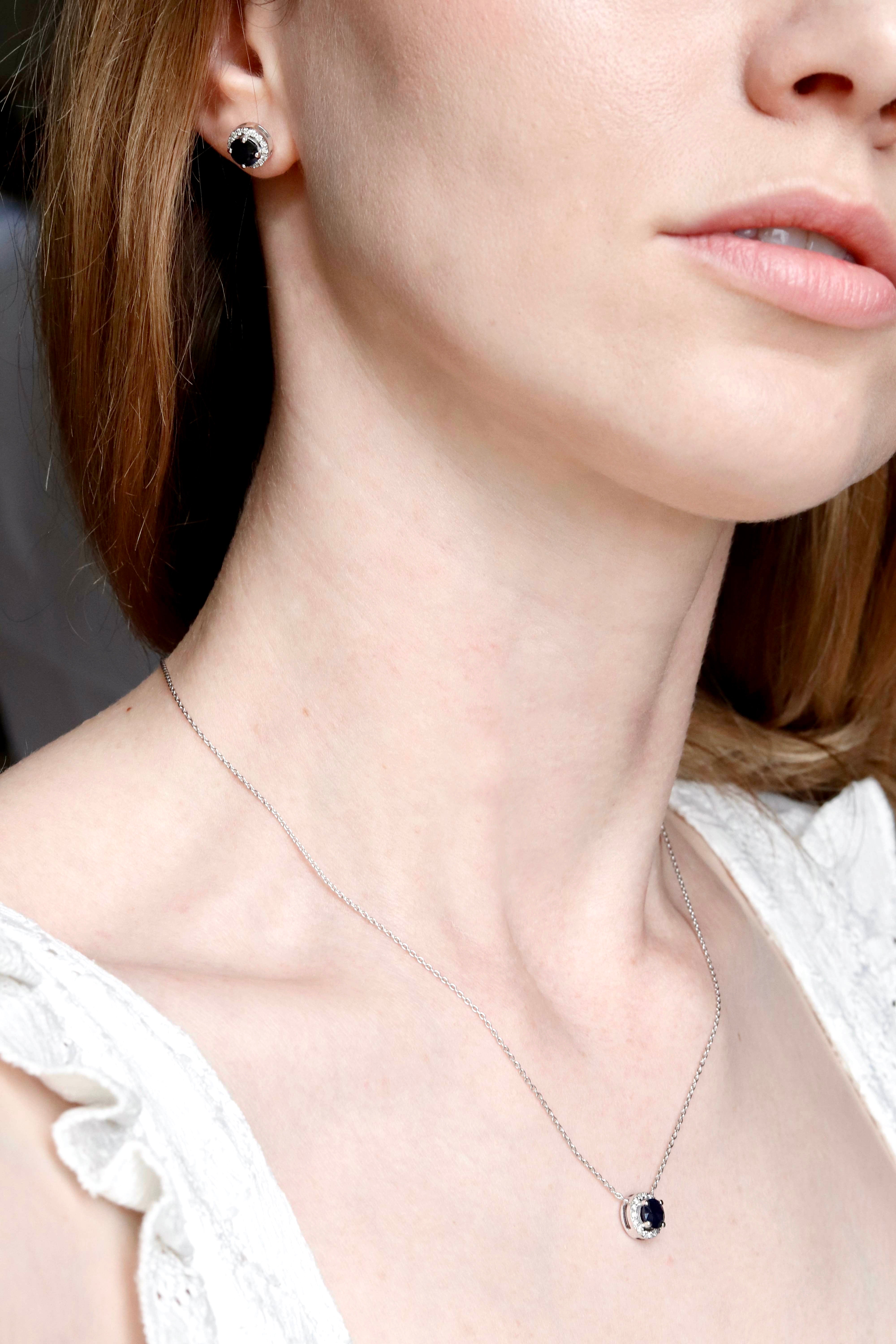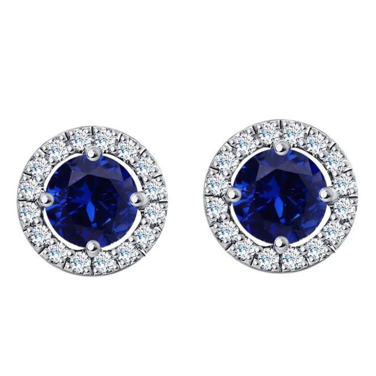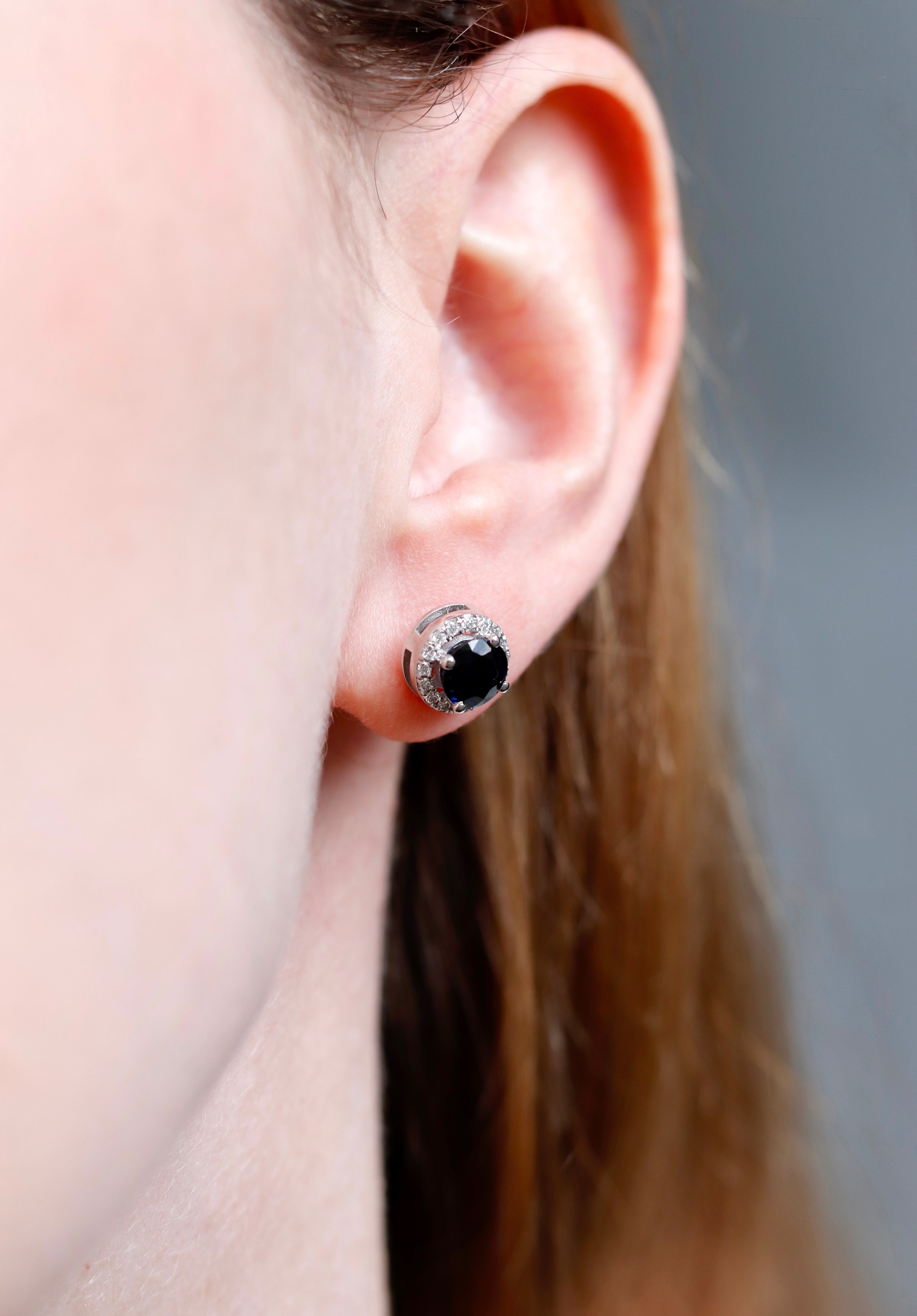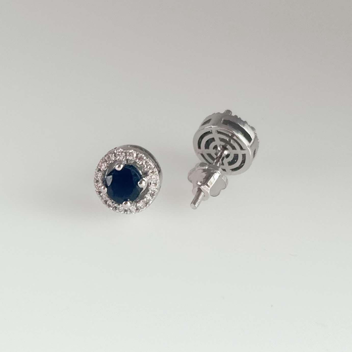 Stud Earrings in 14K/585 White Gold with Sapphires and Diamonds