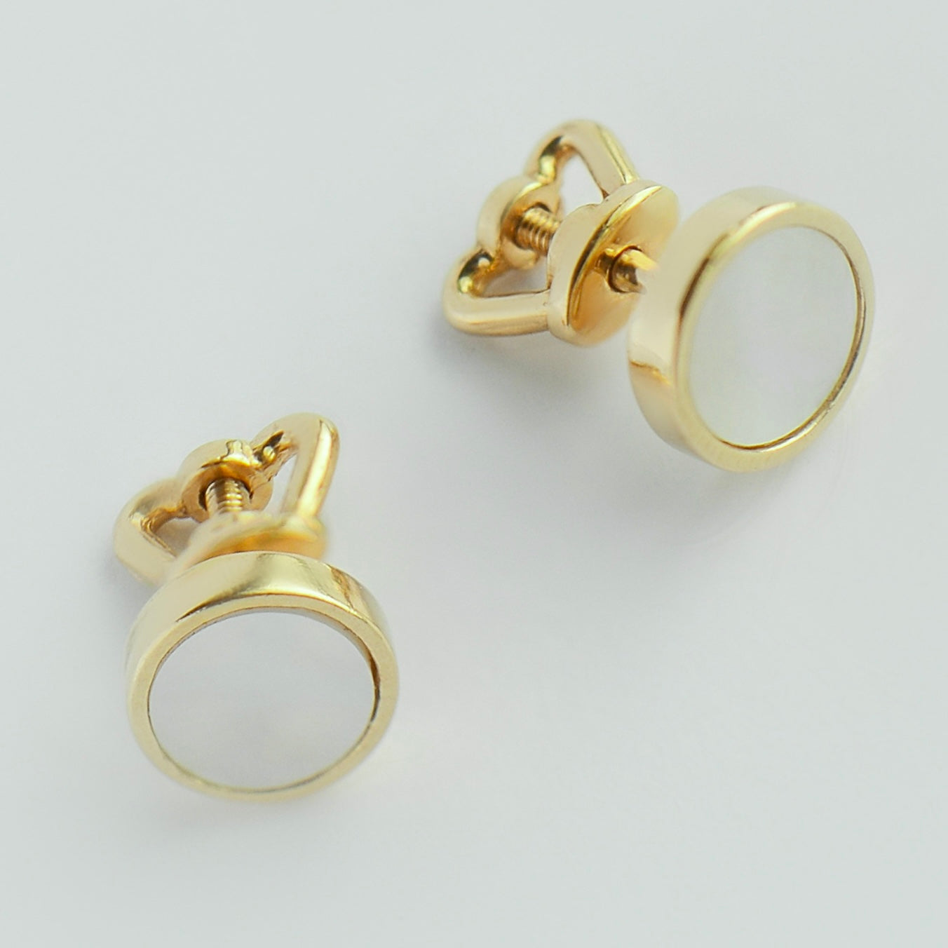 These Stud Earrings in 14K Yellow Gold and Mother of Pearl will add a timelessly elegant touch to any outfit. Crafted with the highest quality yellow gold and mother of pearl, these earrings will make a luxurious statement. Embellished with sophisticated details, they make a perfect gift.