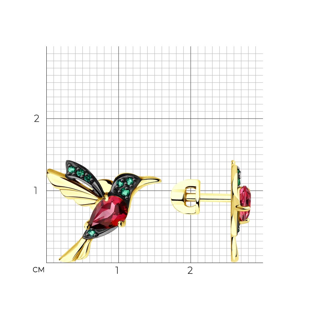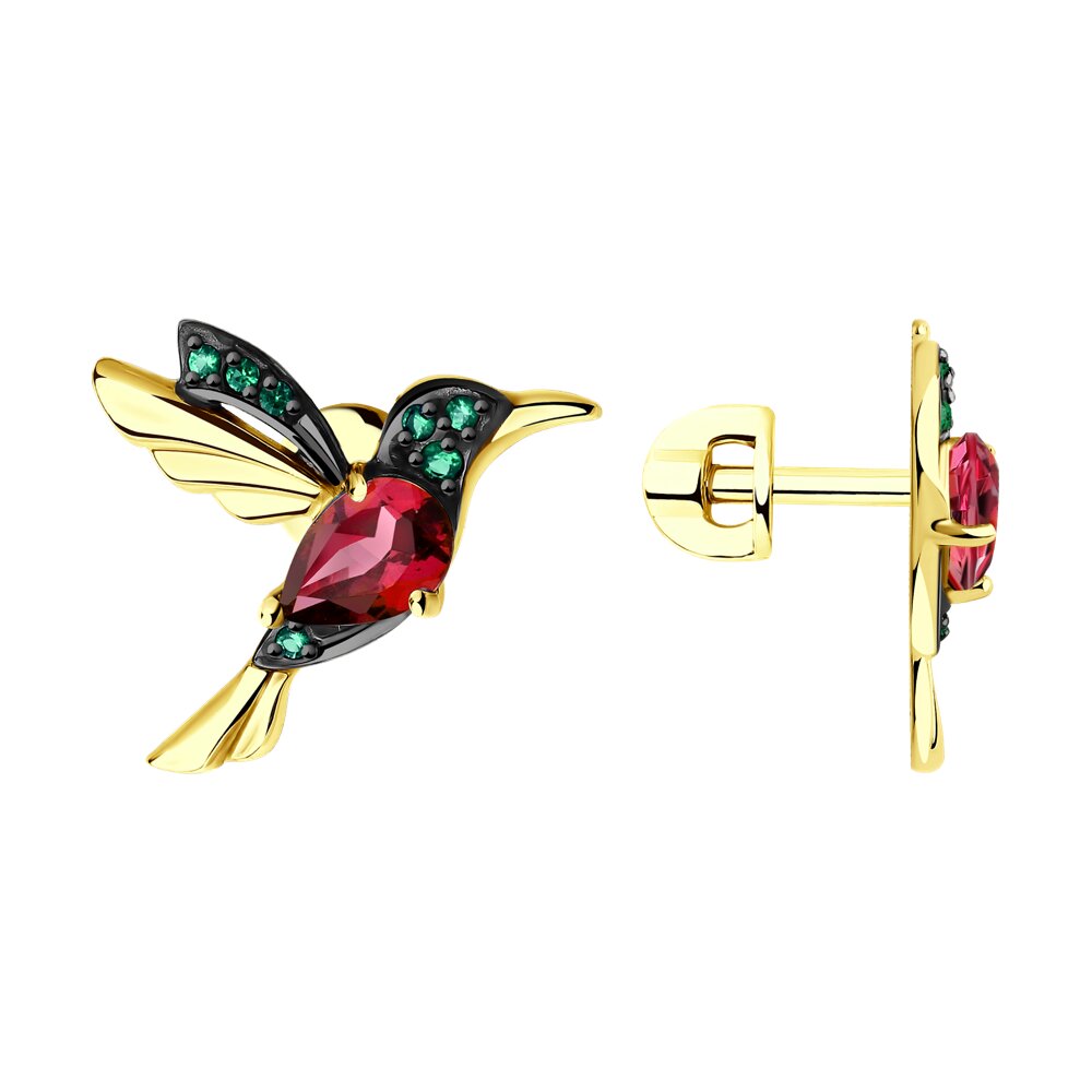 Stud Earrings in 14K/585 Yellow Gold with Rhodolite "Colibri"