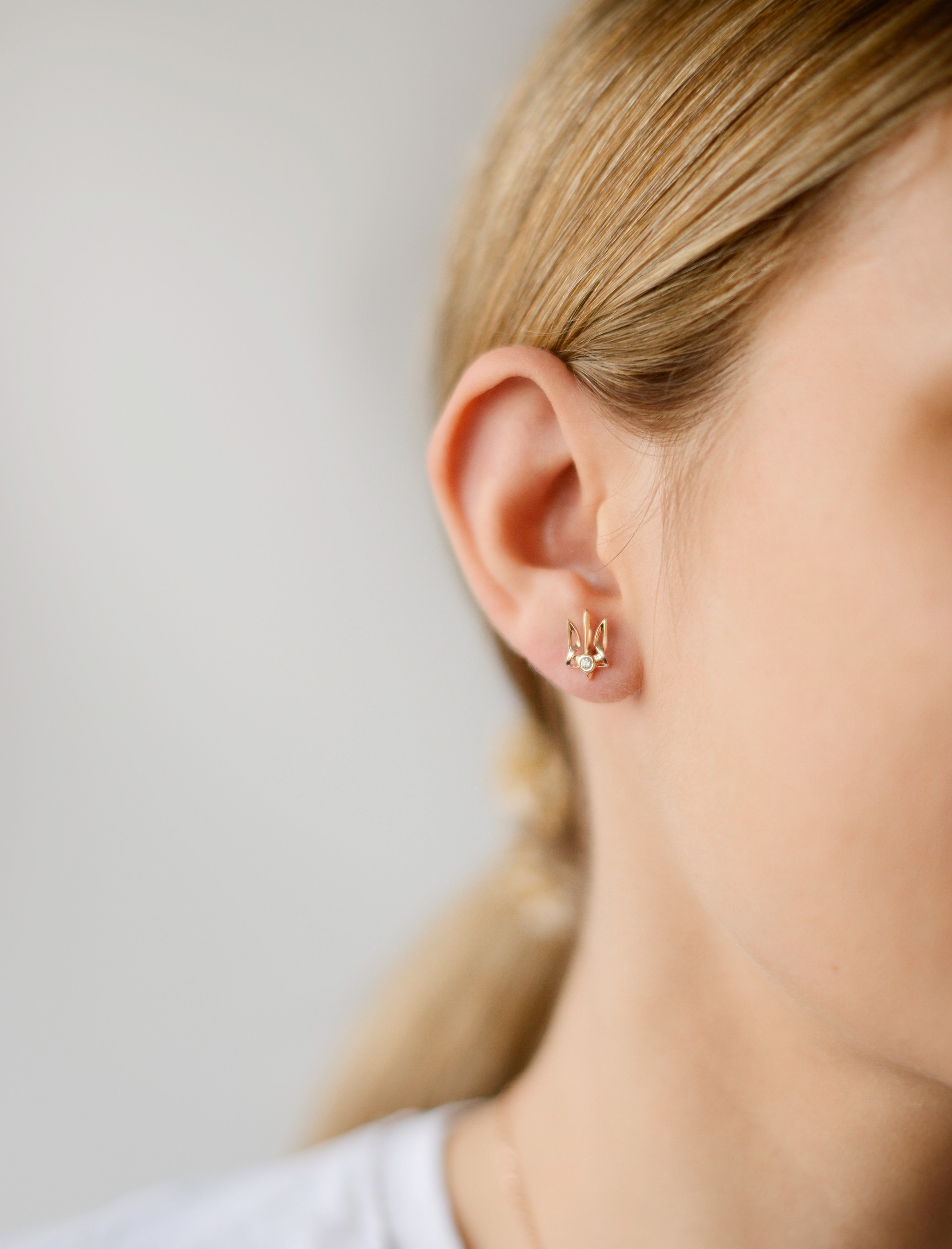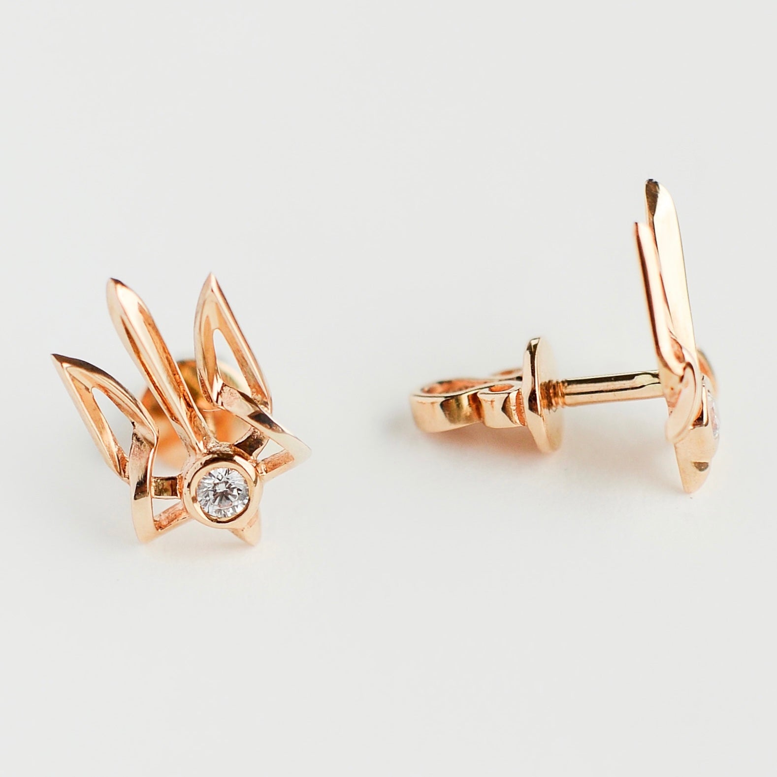 Stud Tryzub Earrings in 14K/585 Rose Gold