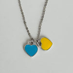925 Sterling Silver Necklace Ukrainian Hearts with Blue and Yellow Enamel