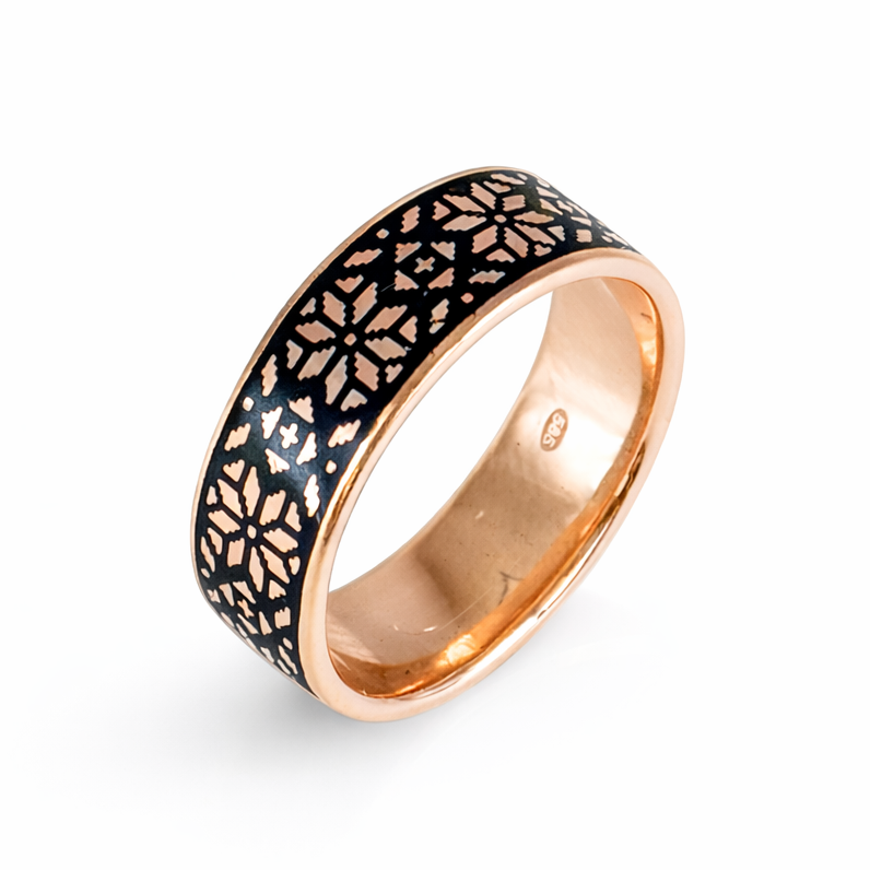 Handcrafted Vyshyvanka Ring in 14K/585 Rose Gold with Enamel