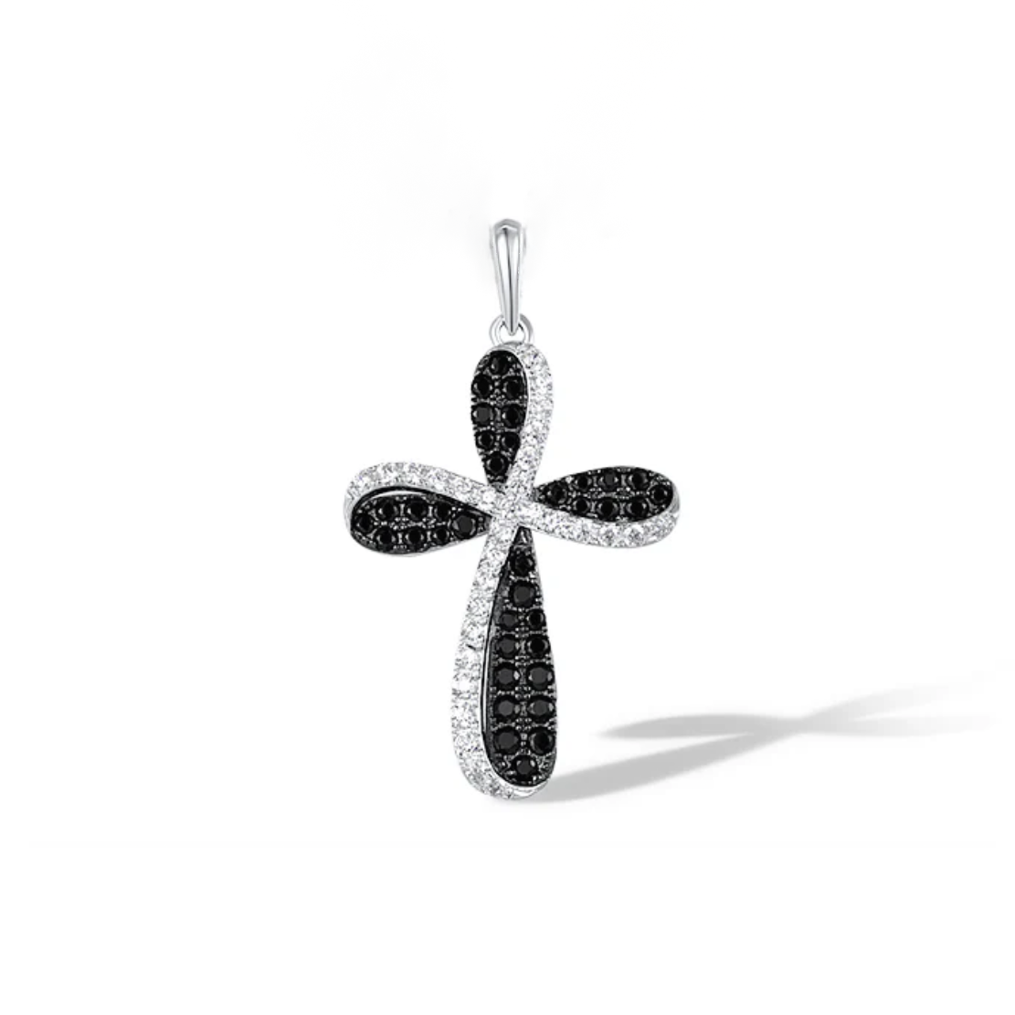 925 Sterling Silver Cross with Black Spinel and White Cubic Zirconia
