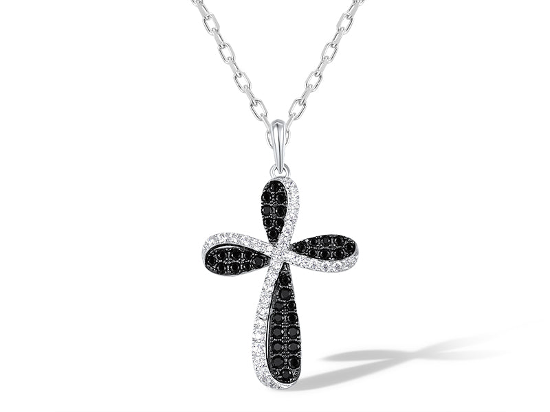 925 Sterling Silver Cross with Black Spinel and White Cubic Zirconia