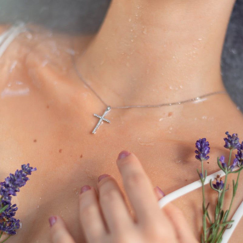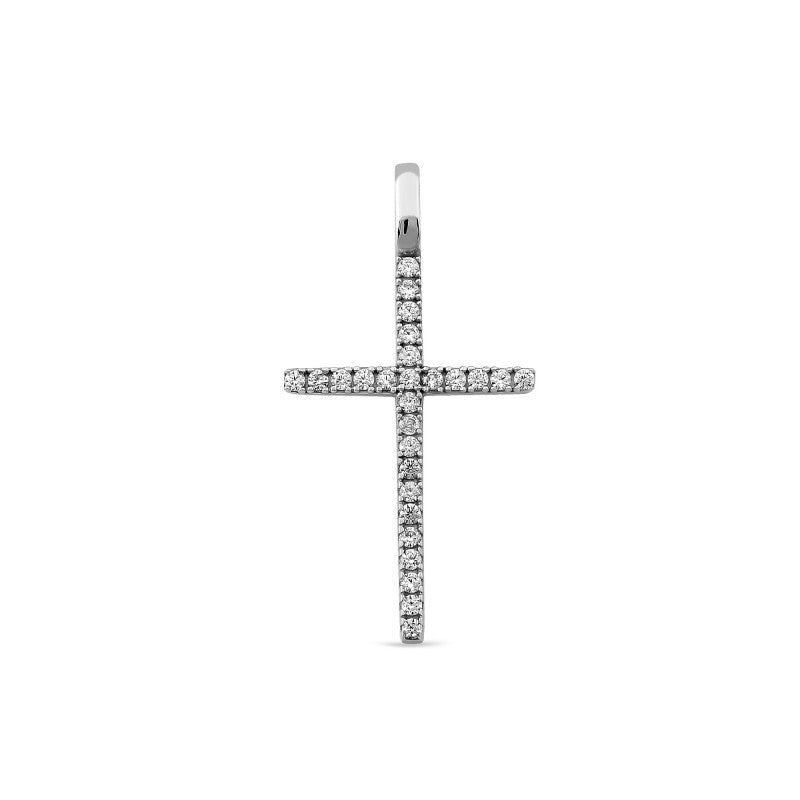 This beautiful 925 sterling silver cross features beautiful cubic zirconia stones, creating a sparkling and minimalistic design. The shiny silver frame provides an elegant and unique look, making it perfect for any occasion.