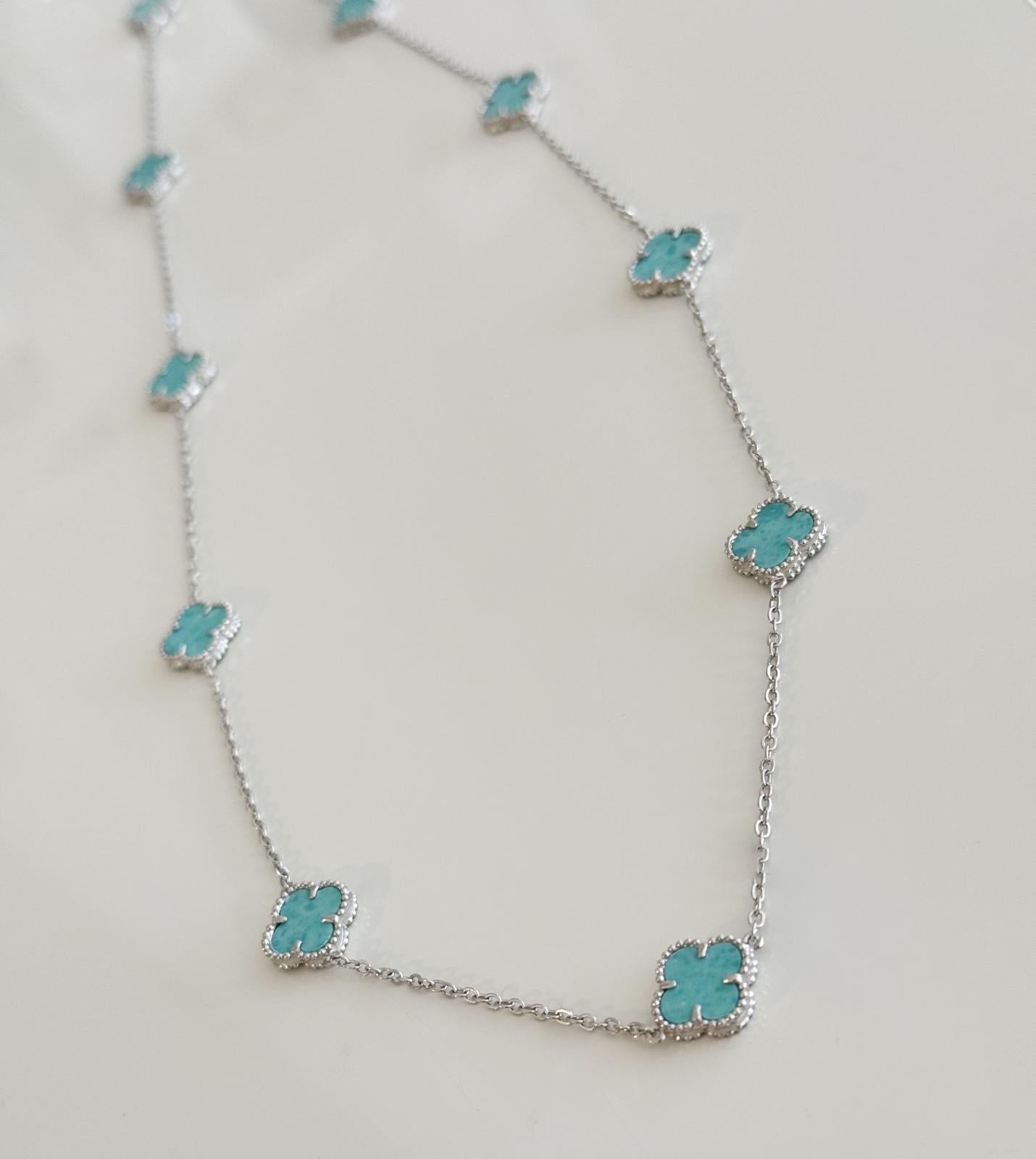 925 Sterling Silver Clover Necklace with Amazonite