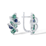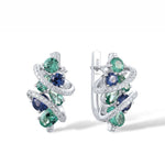 925 Sterling Silver Lever Back Earrings with Blue Spinel,Green Spinel,White Cubic Zirconia