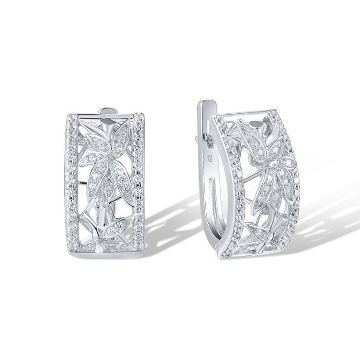 925 Sterling Silver Lever Back Earrings with Cubic Zirconia