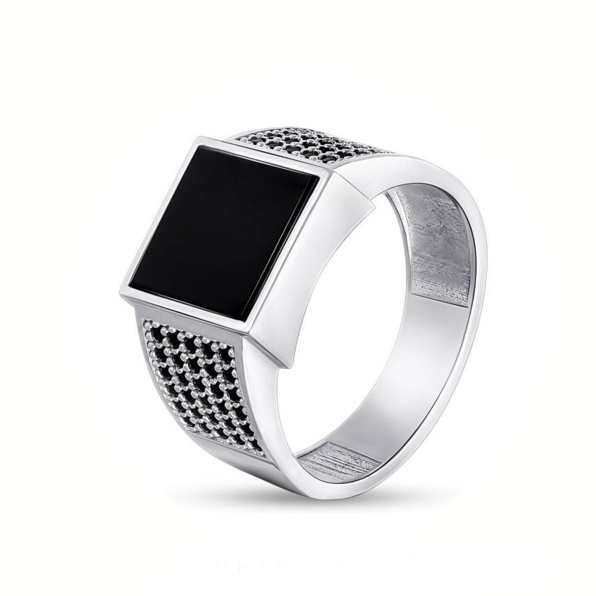 925 Sterling Silver Ring with Onyx and Black Cubic Zirconia