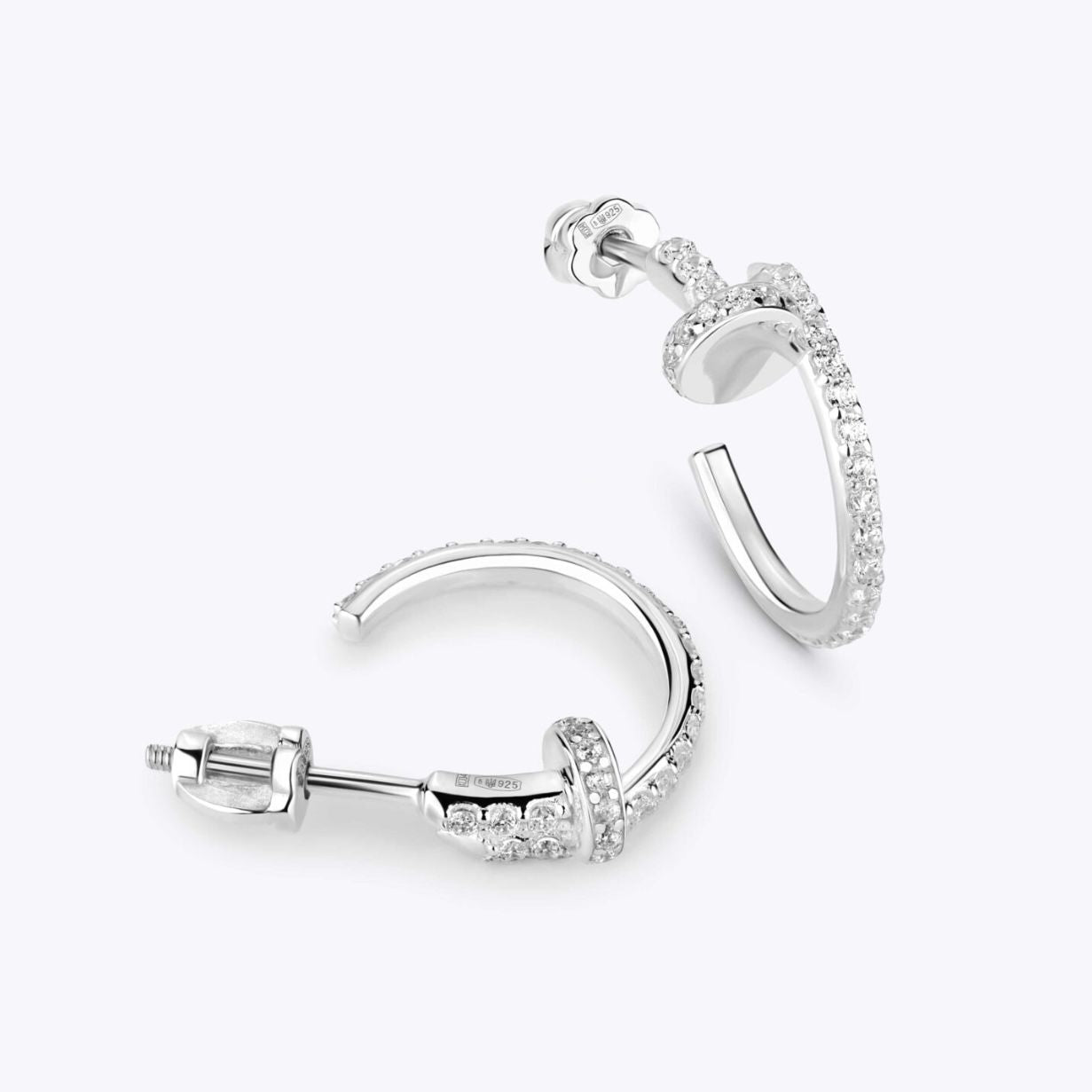 925 Sterling Silver Stud Nail Earrings with Cubic Zirconia