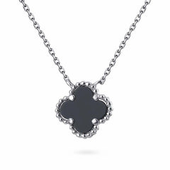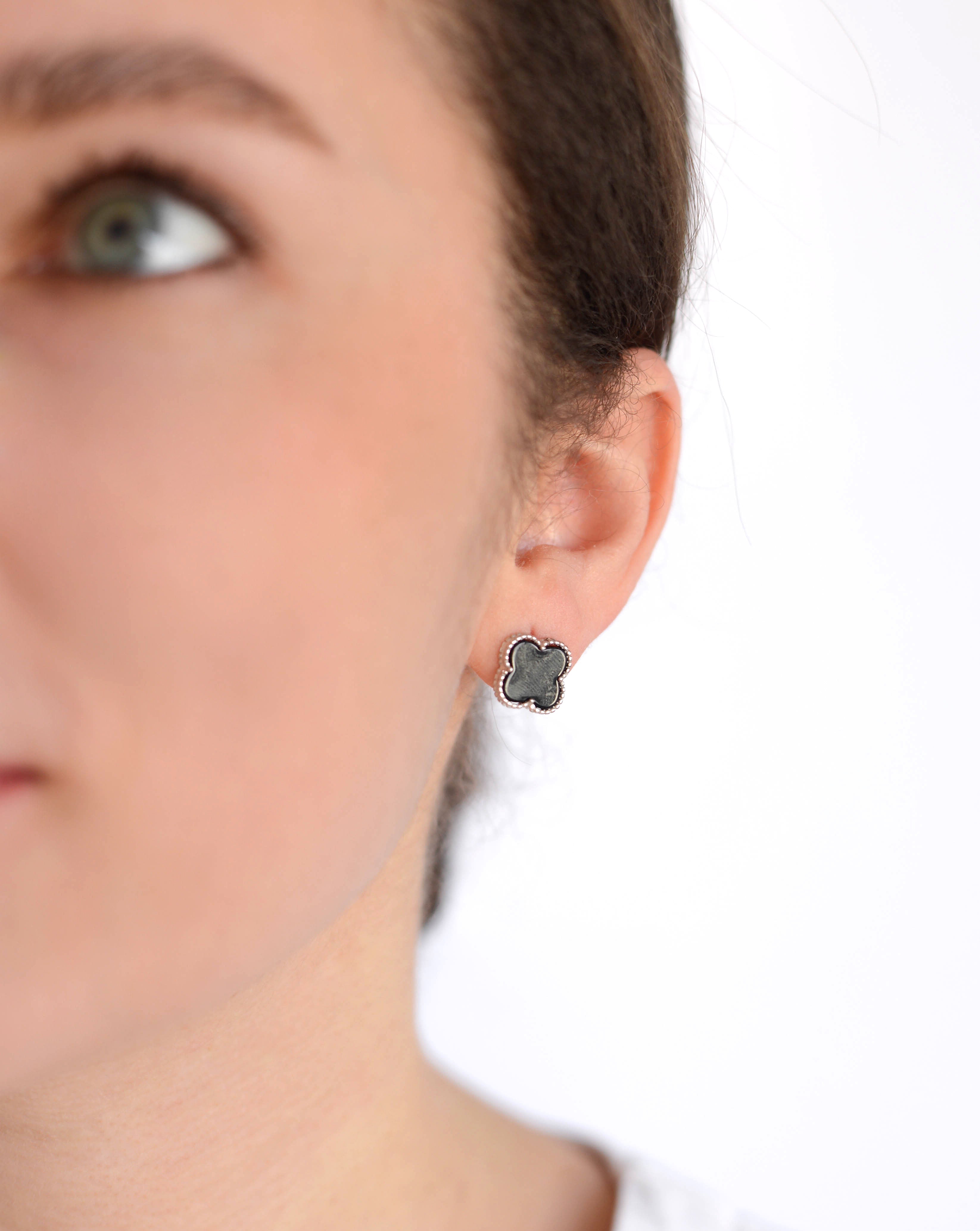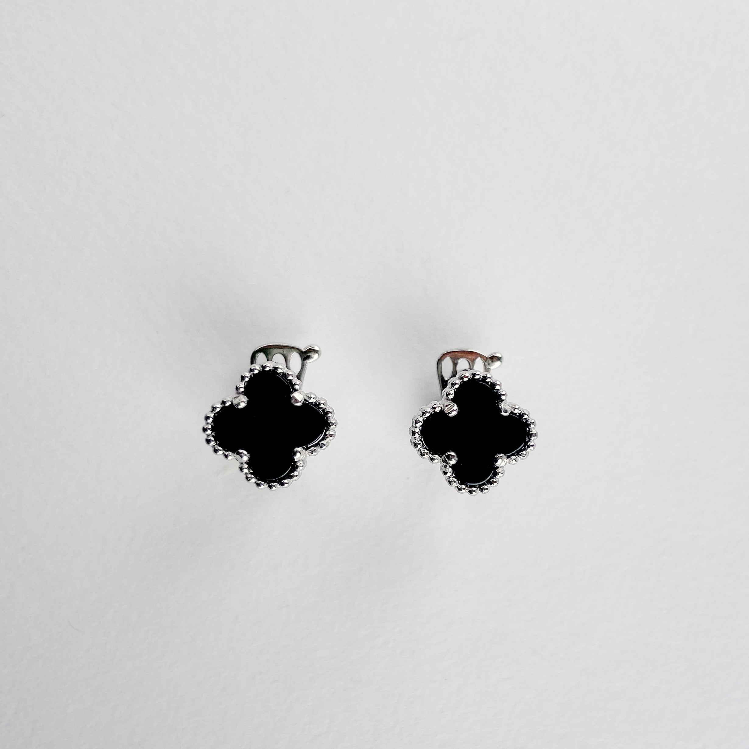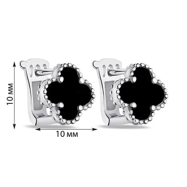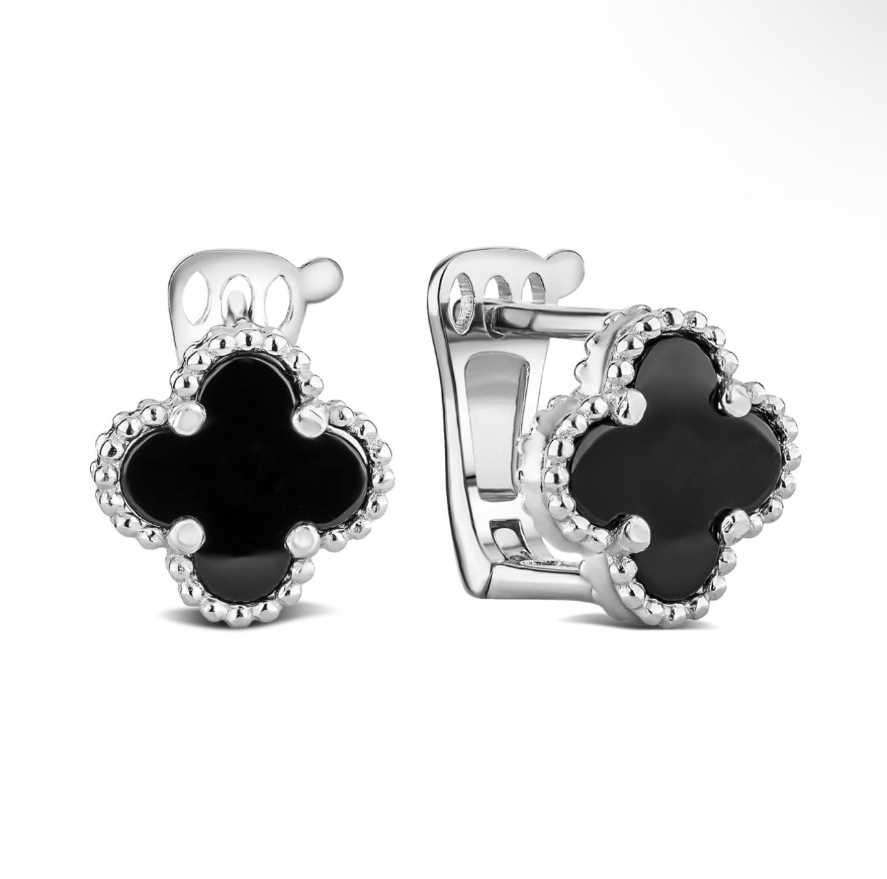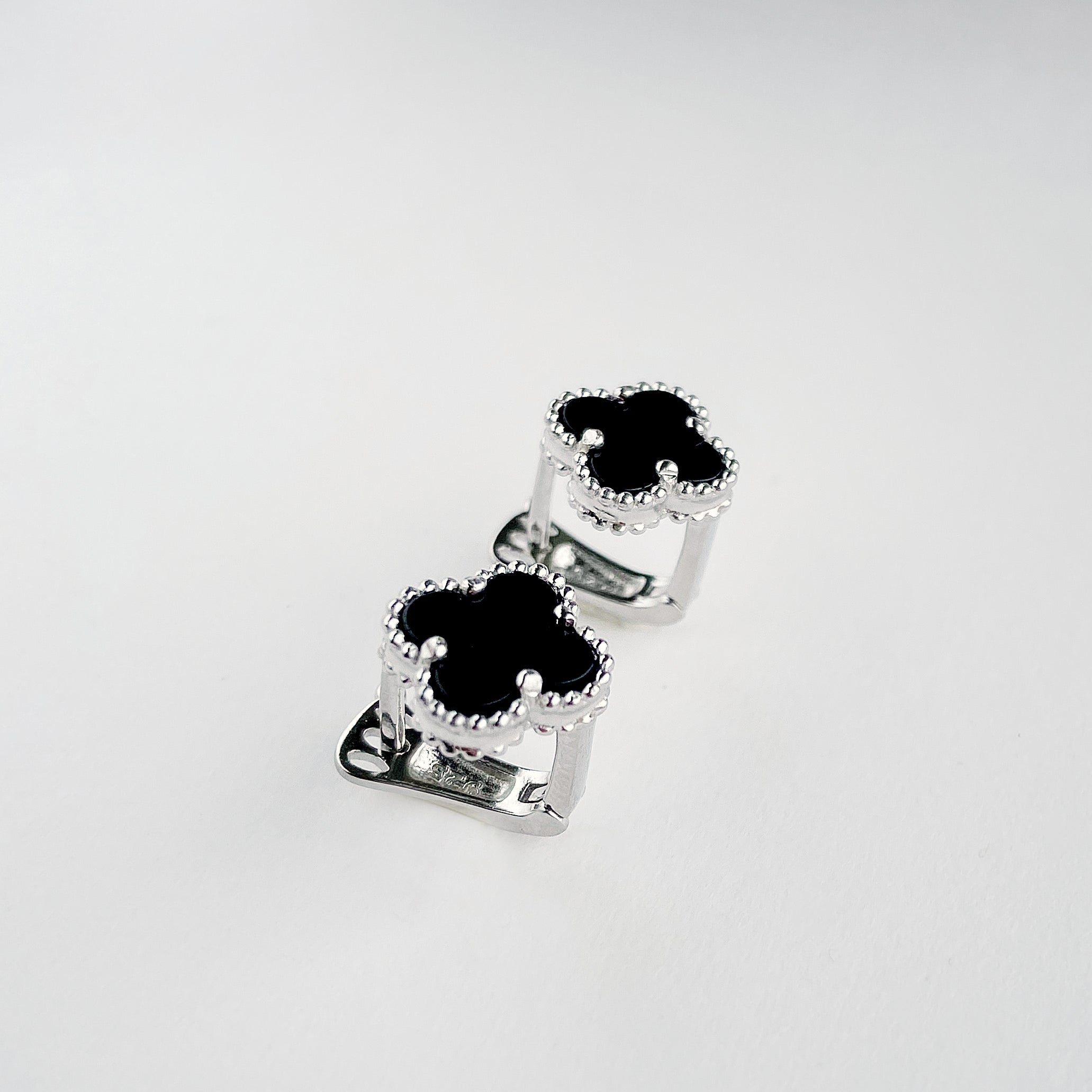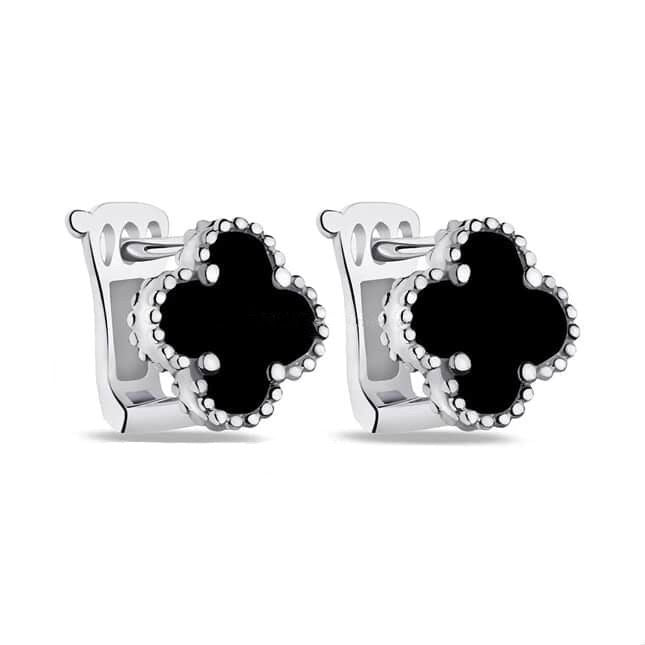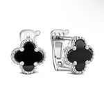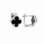 925 Sterling Silver Lever Back Earrings Clover with Onyx