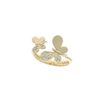 Stunning ring in 14K yellow gold with two butterflies and cubic zirconia.