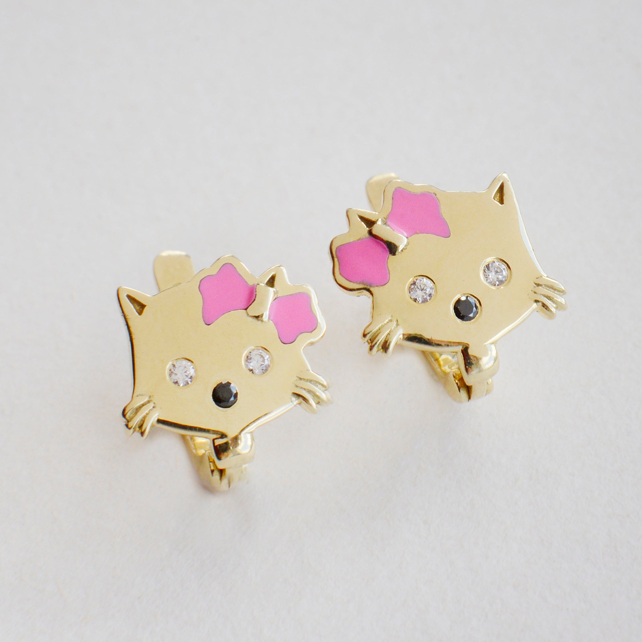 14K/585 yellow gold kittens earrings.