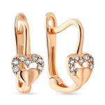 Lever Back Children's Heart Earrings in 14K/585 Rose Gold with Cubic Zirconia