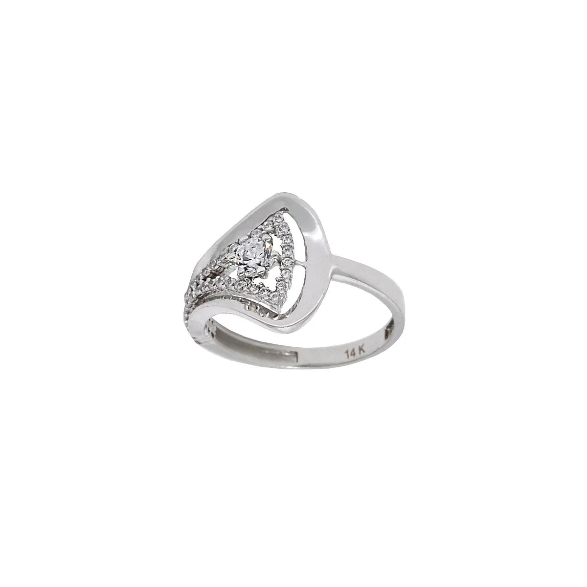 Stunning ring in 14k white gold and shiny cubic zirconia.