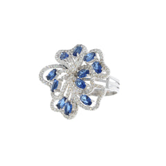 Beautiful flower-shaped pendant in 14k white gold decorated with synthetic sapphires and cubic zirconia.