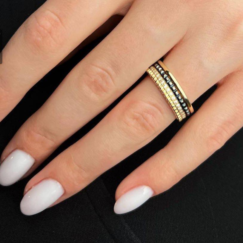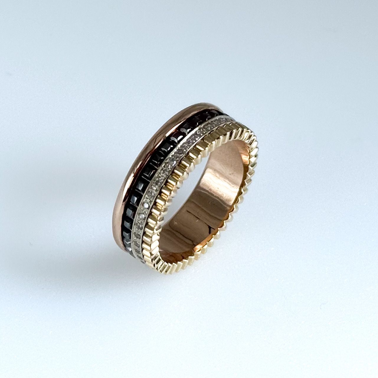Ring in 14K/585 Rose Gold,Yellow Gold, Black Rhodium and White Cubic Zirconia