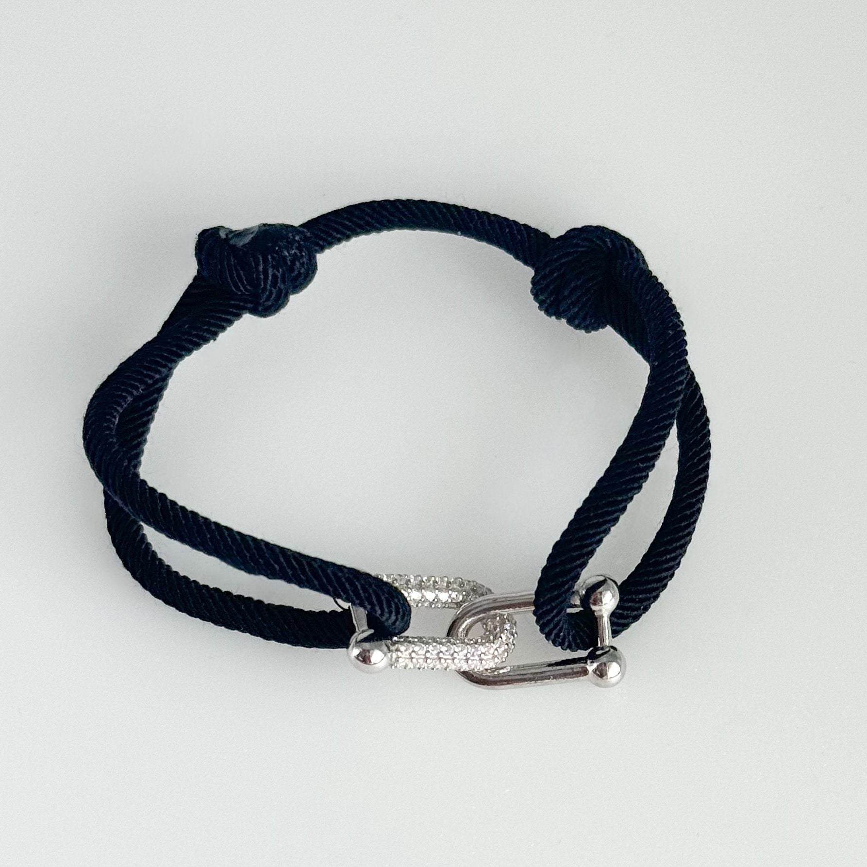 Rope Bracelet with 925 Sterling Silver Inserts and Cubic Zirconia