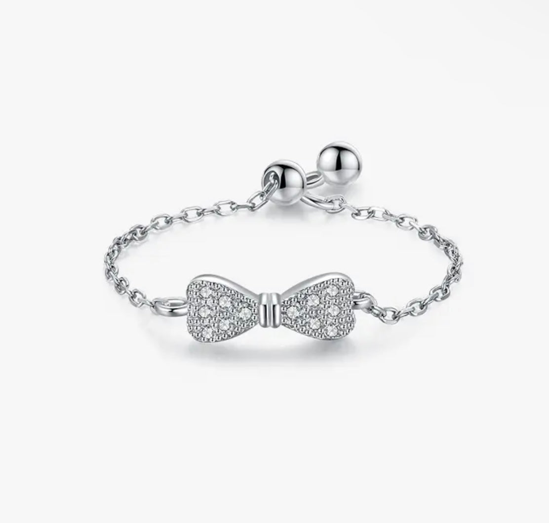 925 Sterling Silver Chain Ring with Cubic Zirconia Stones