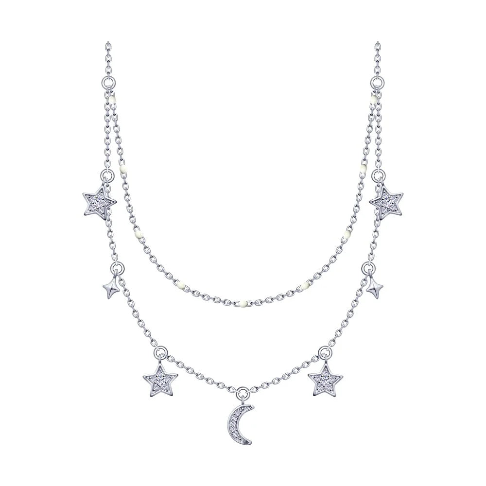 Gorgeous necklace with stars and moon with cubic zirconia.