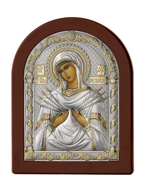 Religious Icon St. Mary Seven Swords with Gold Plated Details