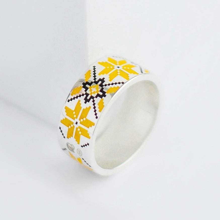 Handcrafted 925 Sterling Silver Vyshyvanka Ring with Enamel